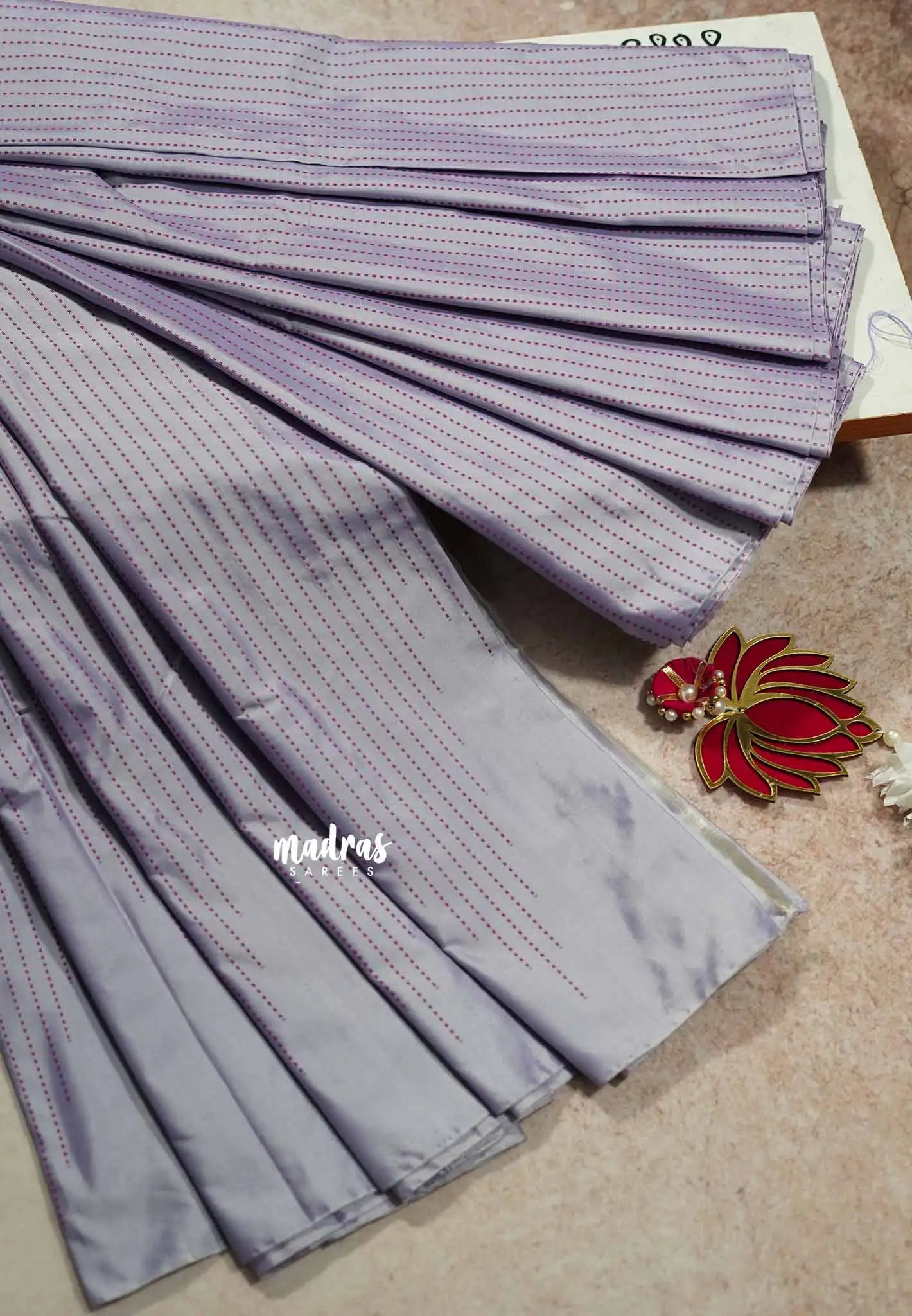 A graceful Arani semi soft silk saree featuring delicate kantha-style dotted lines across the body. Woven with fine craftsmanship, this saree blends minimalism with traditional charm — perfect for workwear, casual elegance, or gifting.