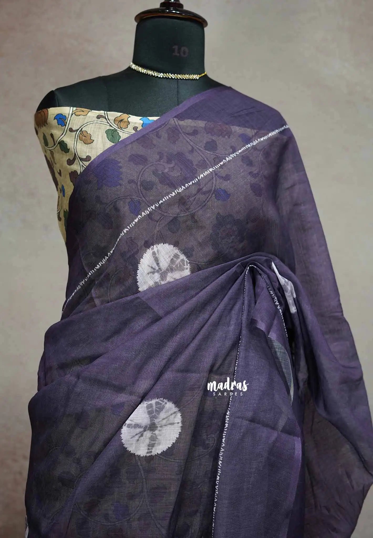 Experience the perfect corporate look linen cotton saree with floral prints. With its lightweight and smooth texture, this saree is perfect as corporate wear, providing both style and comfort.