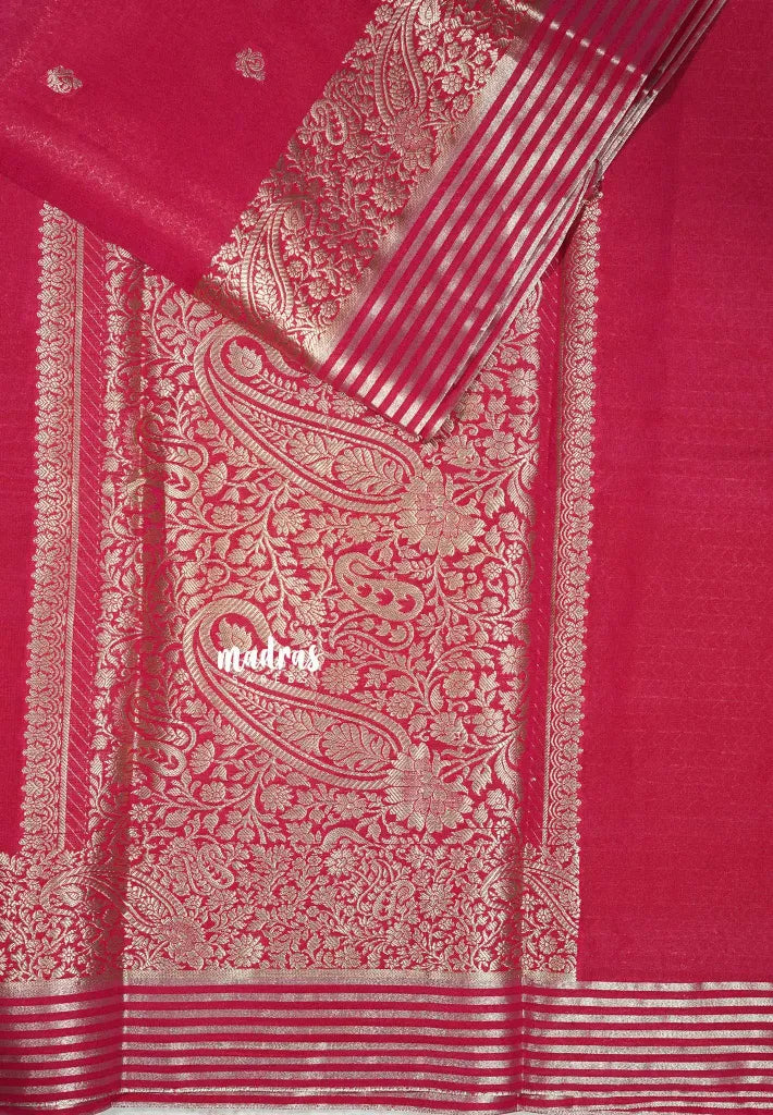 Replica of traditional Mysore silk. With its lightweight and smooth texture, this saree is perfect for daily use and gifting.