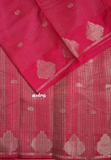 Queen's Pink - Raaga - Premium Raw Mango silk with 3D stripes weaving Body with Buttas