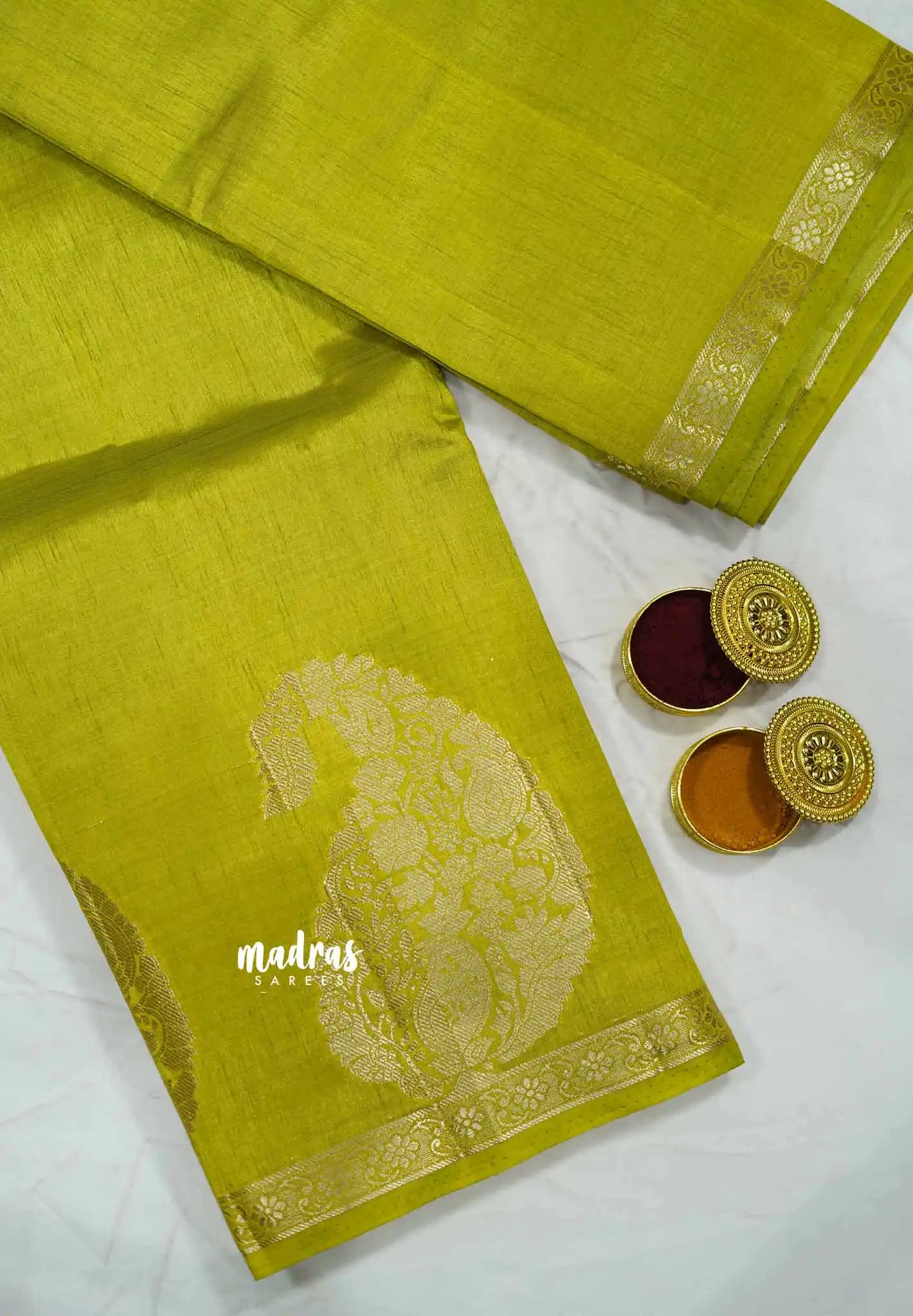Elevate your style with this timeless elegance Semi Tussar saree with grand tissue pallu and blouse. Crafted to perfection and don't miss out on this captivating collection!