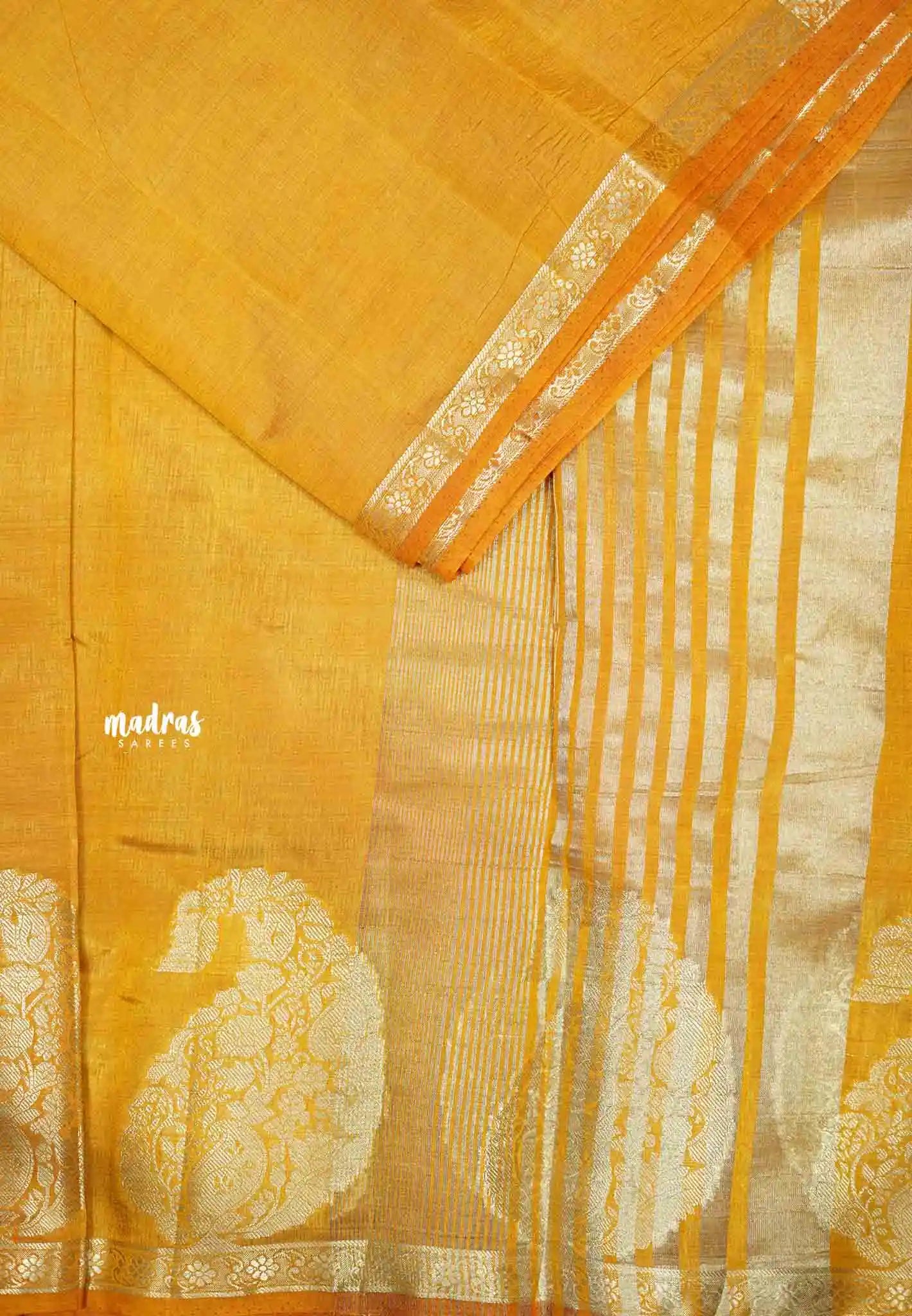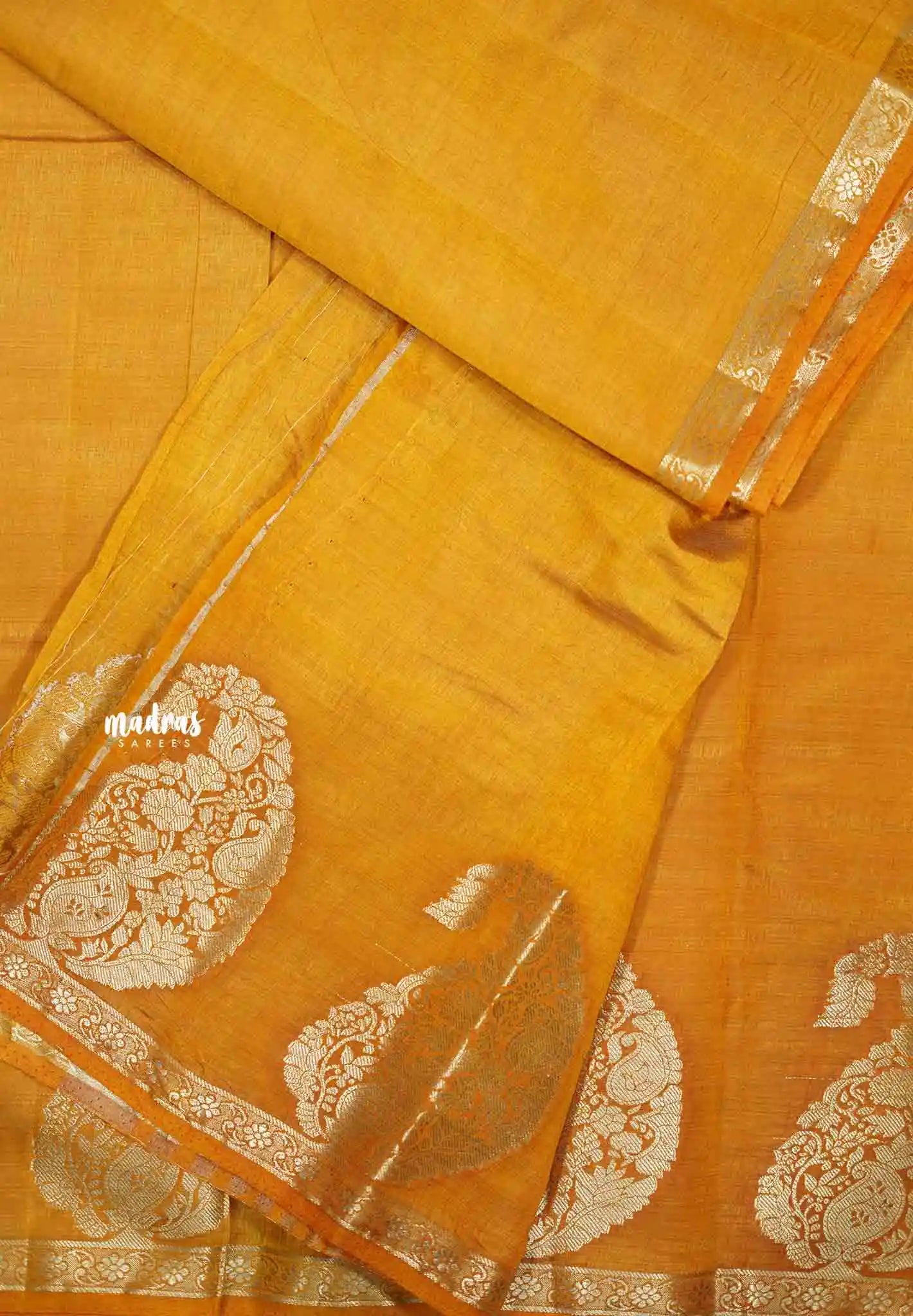 Raaga - Lightweight Semi tussar saree with Mango border - Mustard yellow