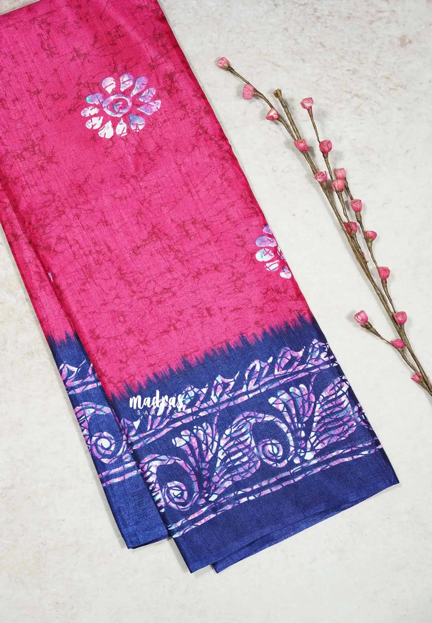 Rani Pink - Uniform sarees Malgudi printed silk with batik prints