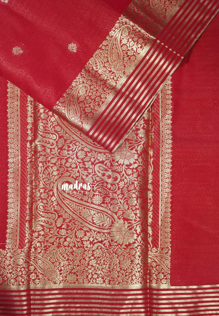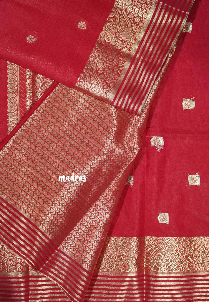 Red - Avantika - Semi Mysore silk buttas with zari border
