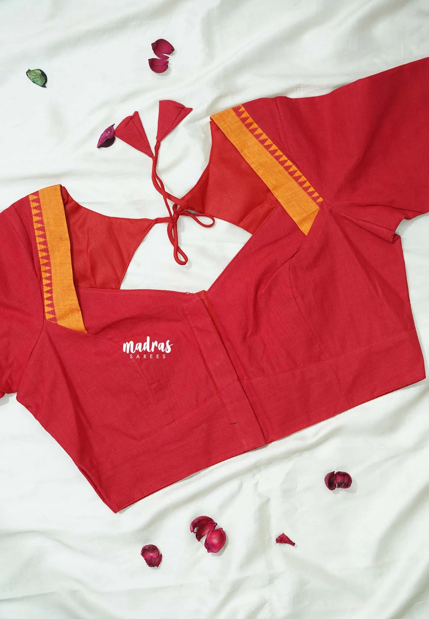 Red - Customised Mangalgiri Cotton Ready Made Blouse
