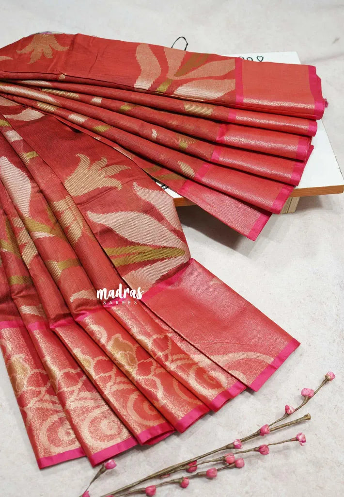 This lightweight ikkat Pochampally saree, adorned with floral weaving, is perfect for any occasion. Its light fabric and quality tissue border offer a graceful touch, while the premium quality enhances your divine beauty.