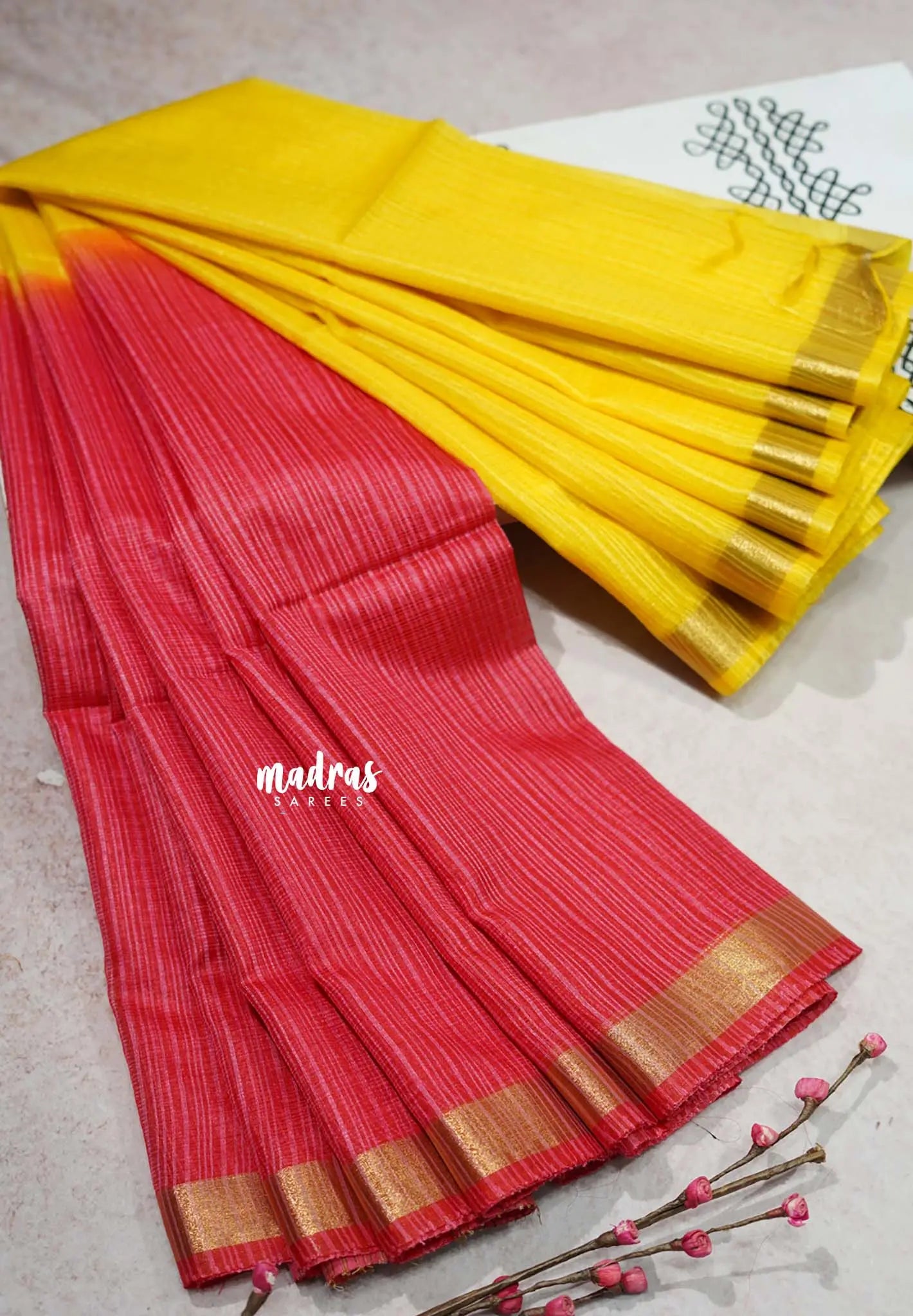 Reddish Pink with Yellow - Shalini Premium kota silk half and half color