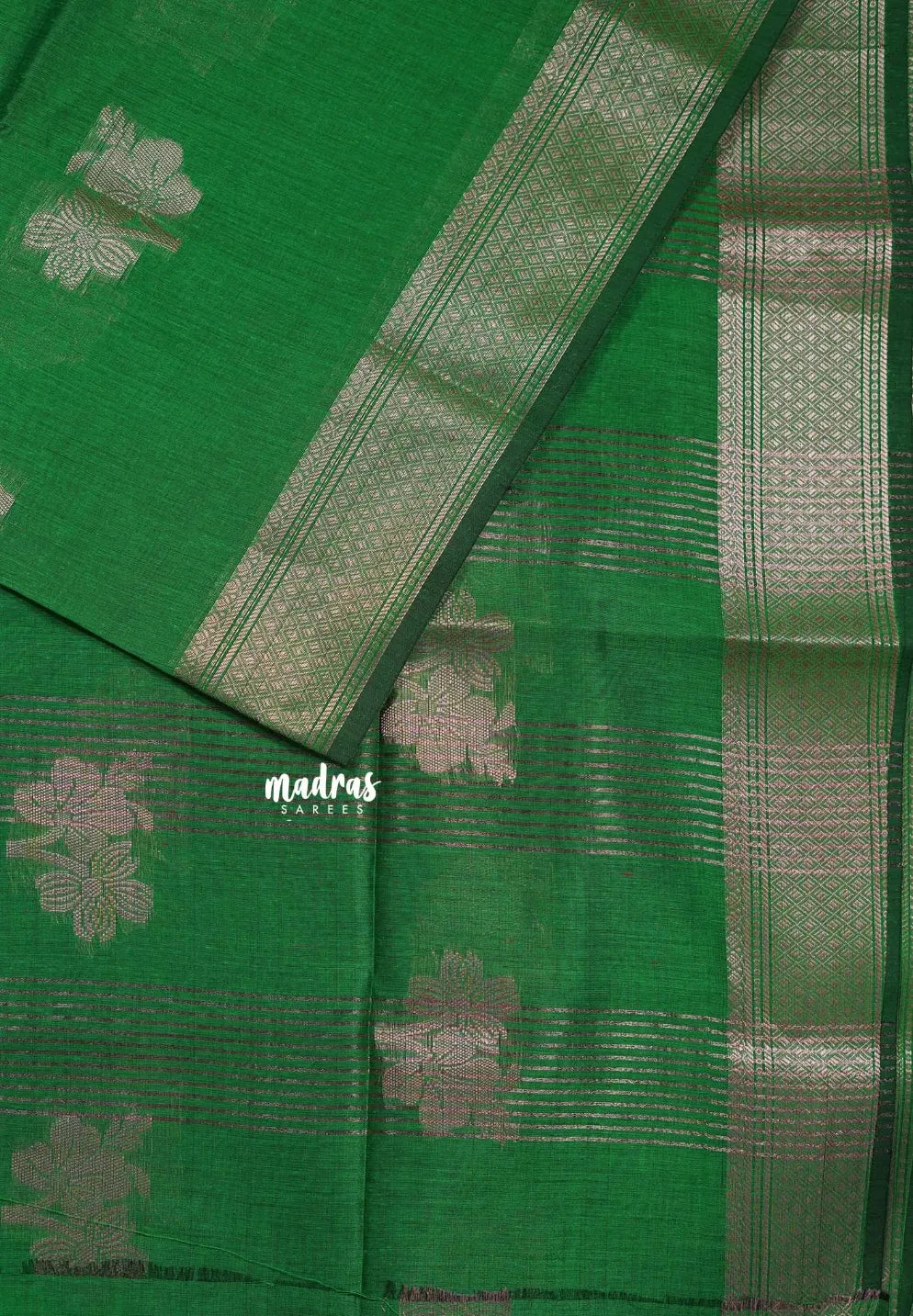 Regal Parrot Green - Maheswari - Cotton Silk with Buttas and Small Border - Best for Small Functions