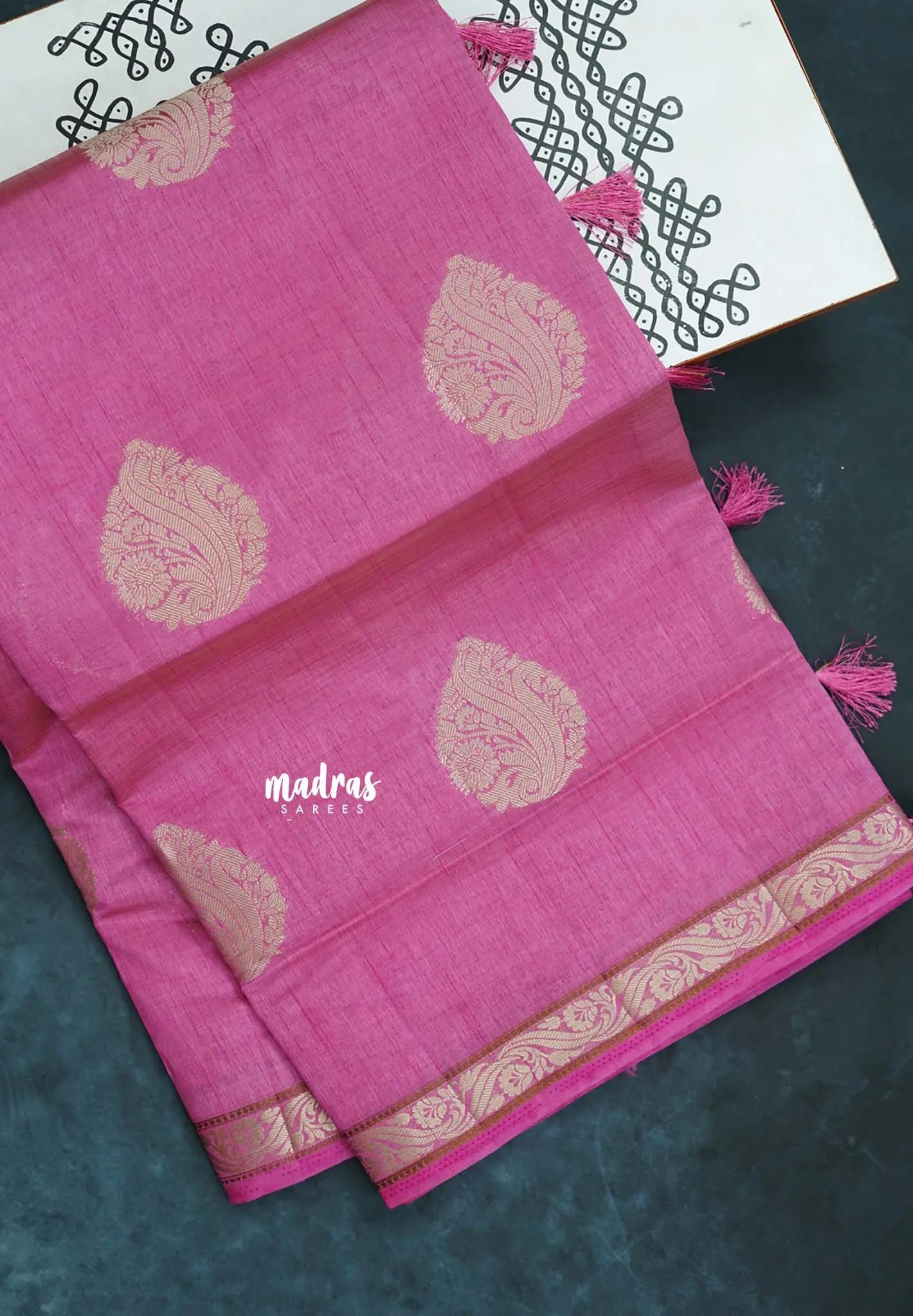 Dual Shade Rose Pink - Raaga - Lightweight Semi tussar saree with bog buttas and small border