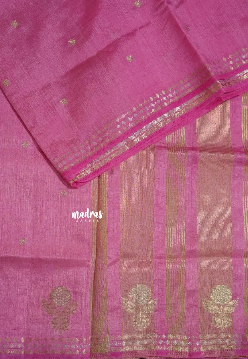 Rose Pink - Raaga - Lightweight Semi tussar saree with zari bloom border with buttas - Perfect for Festive Moments