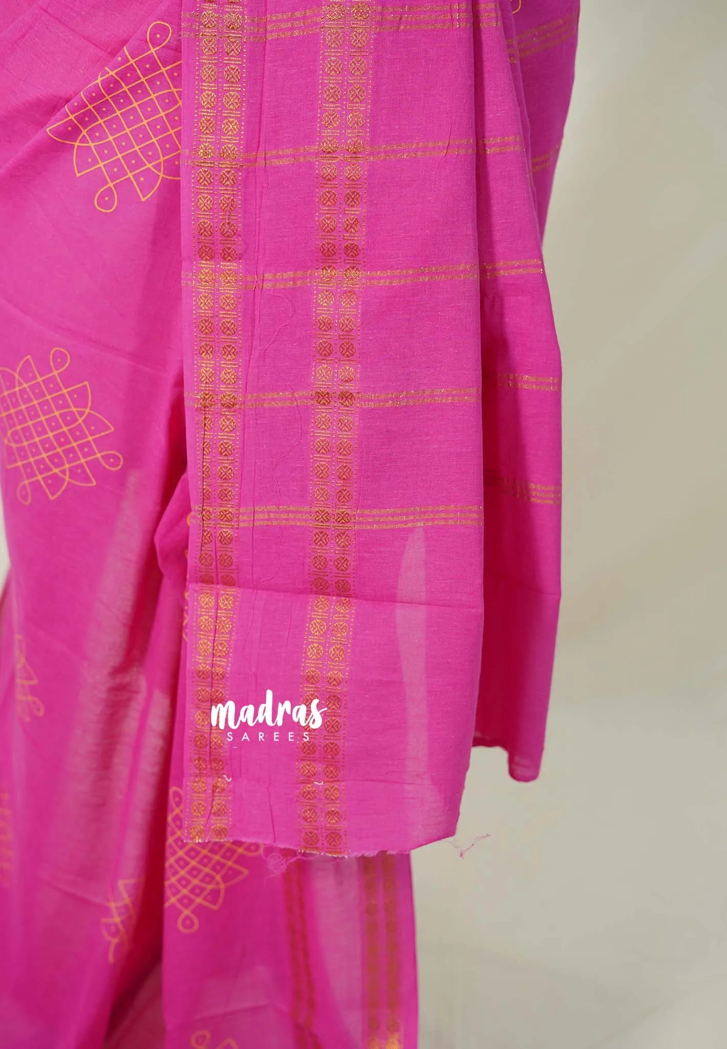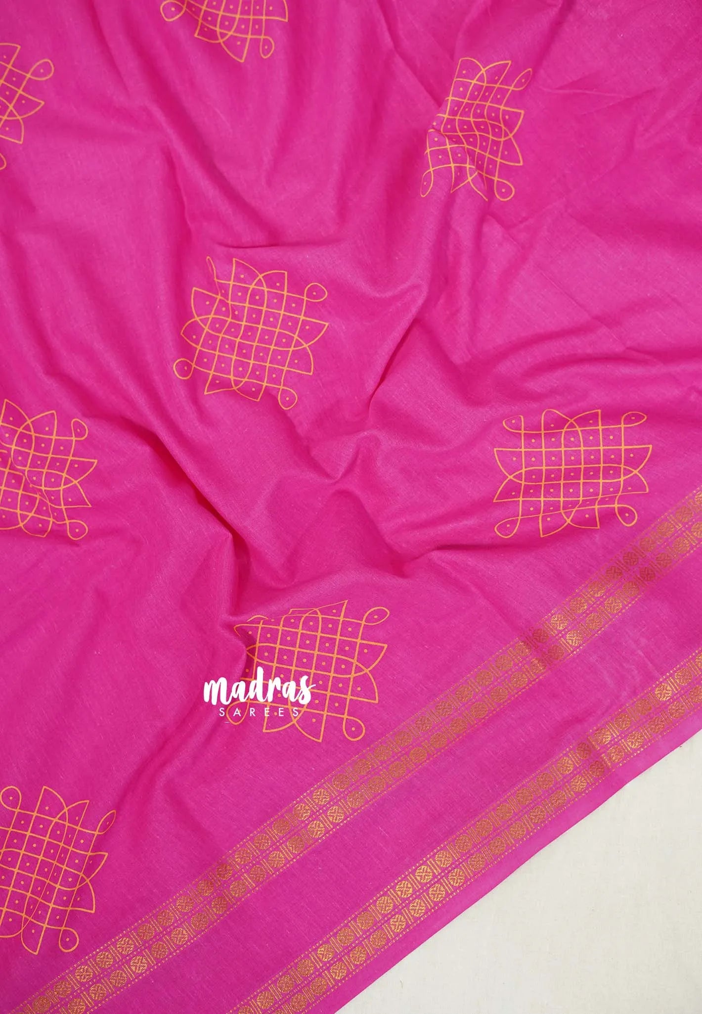 Presenting a 100 thread count Subbulakshmi Sungudi saree, an exclusive design thoughtfully created only by Madras Sarees. This unique creation reflects our passion for bringing fresh ideas into traditional weaving while preserving the authentic charm of Sungudi.