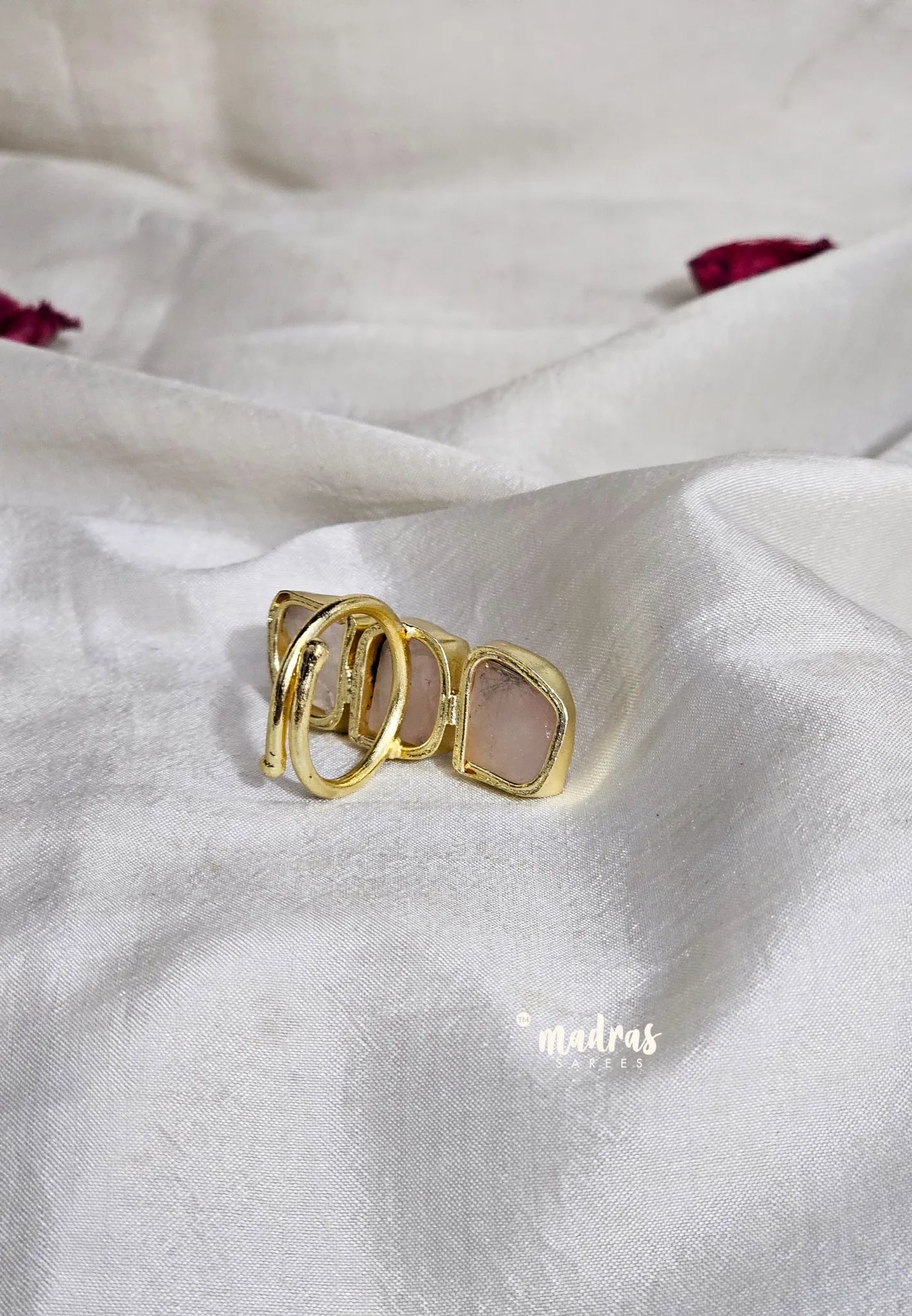 Rose Quartz Raw Stone Handmade Imported Contemporary Stack Adjustable Ring