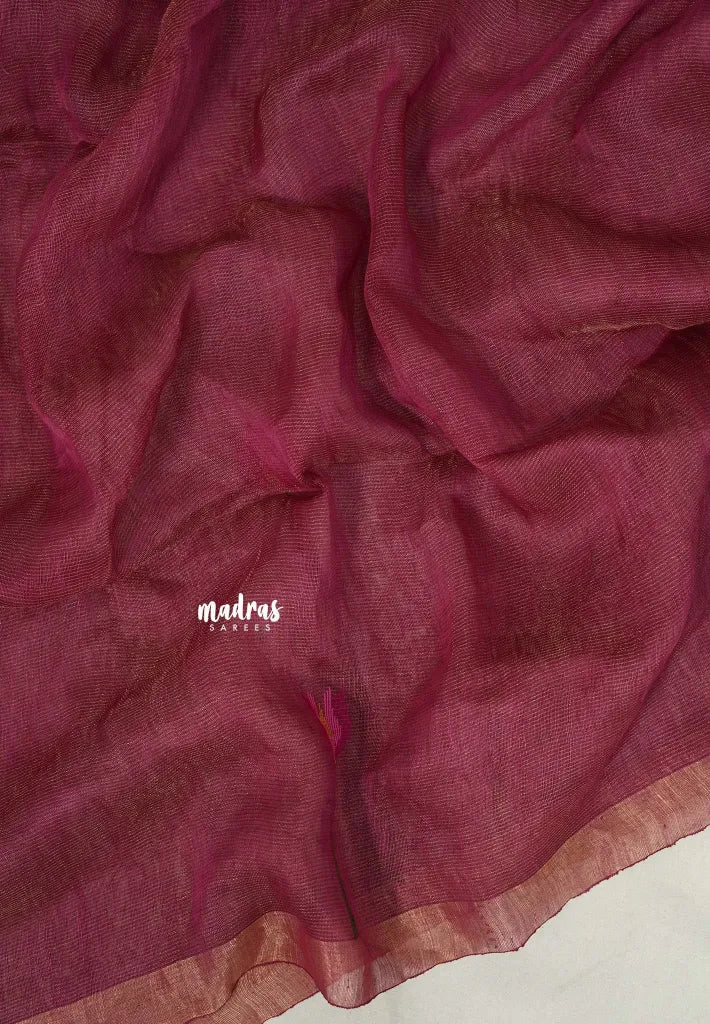 The silk-linen blend offers a perfect balance of natural sheen and breathability, making the saree lightweight, airy, and extremely comfortable for long wear. The body features subtle woven motifs, while the richly designed pallu highlights traditional patterns that add depth and character without overpowering the look. A soft, elegant border completes the saree with timeless charm.