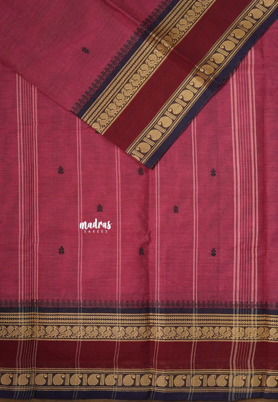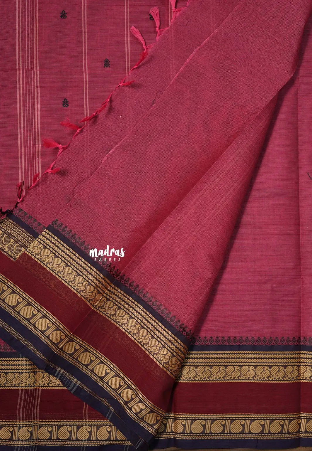Rosewood Pink - Karthigai silk cotton annam mango border with buttas - Best for Gifting