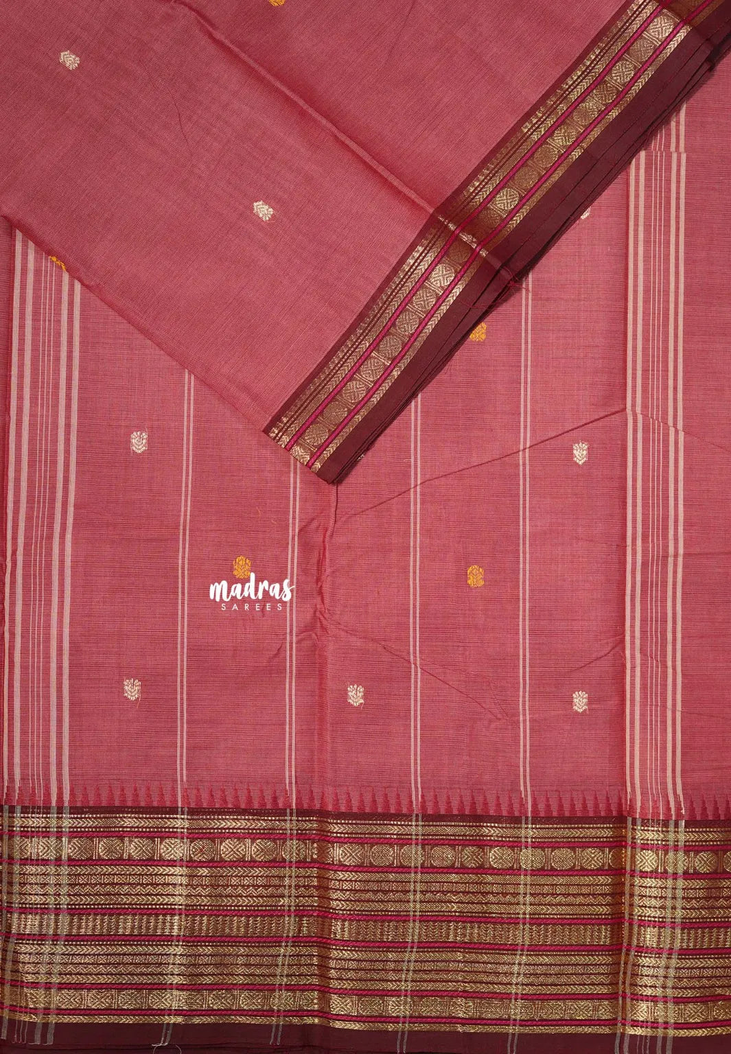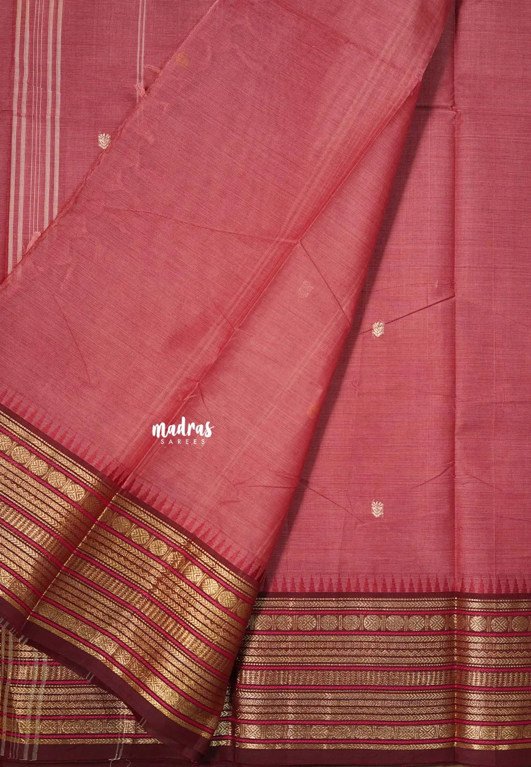 Rosewood Pink - Karthigai silk cotton body multiborder with Rudraksham - Best for Gifting