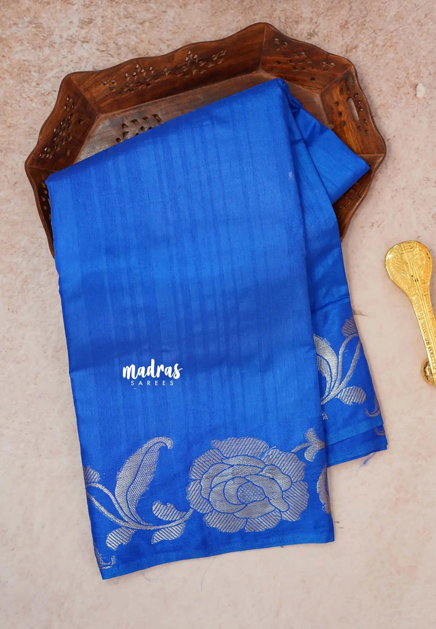 Royal Blue - Madhuram - Soft Matka silk with grooves body and floral border