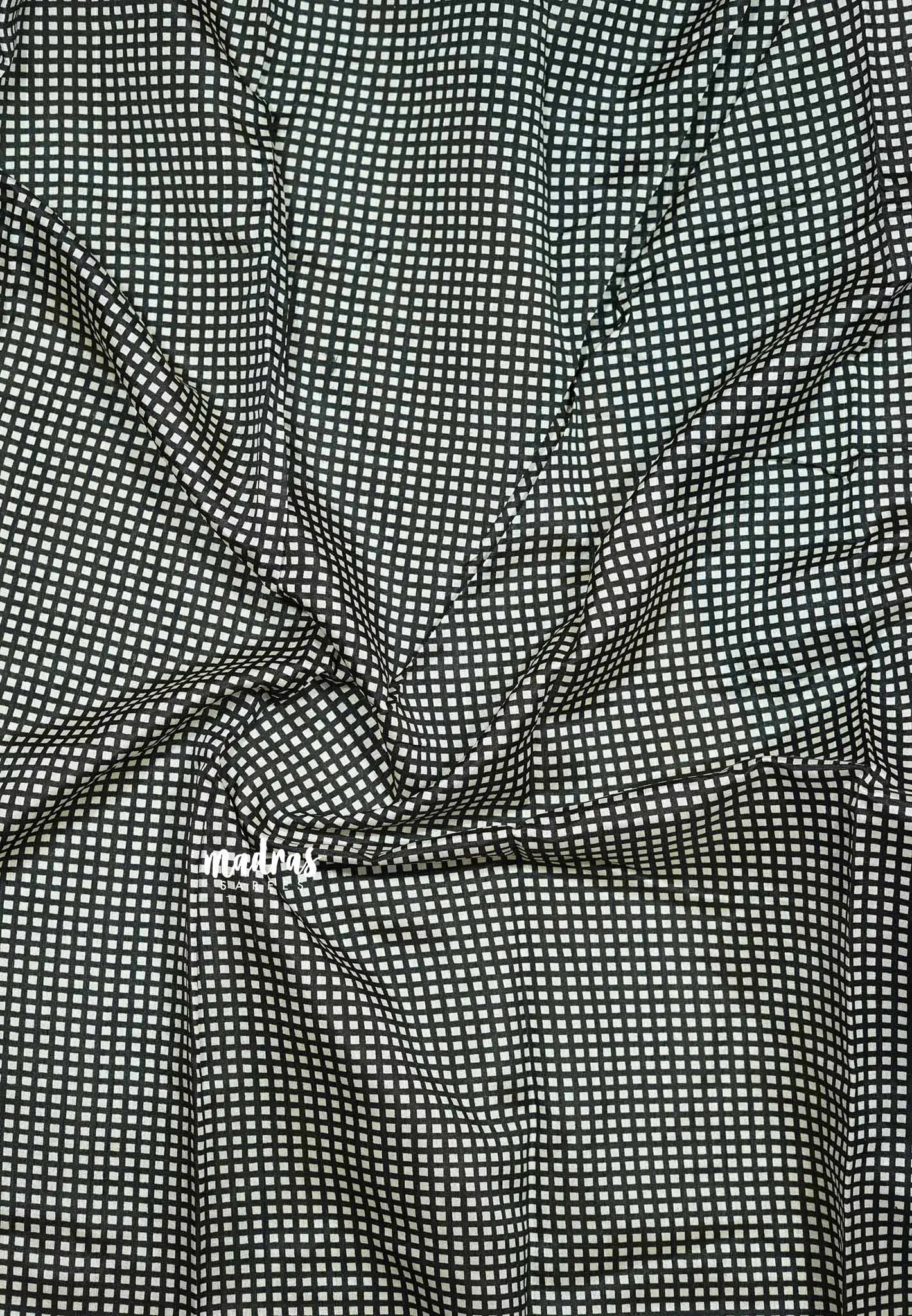 Royal blue with checks border - Zara Malgudi Fusion printed silk