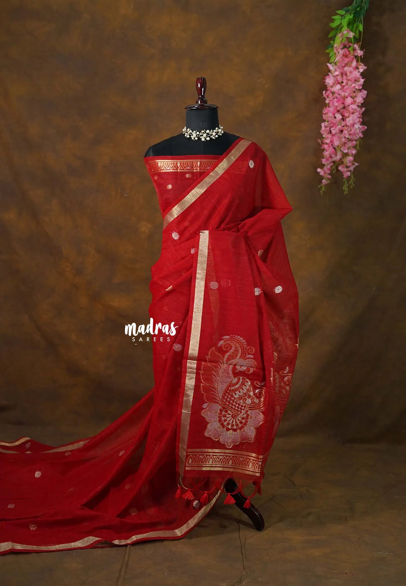 This 120 count premium linen saree is crafted for those who love refined elegance with everyday comfort. The fine, breathable linen offers a smooth and lightweight drape, while the subtle tissue border adds a soft festive sheen without overpowering the look. Delicate motifs enhance its charm, making it a perfect choice for office wear, elegant day functions, and graceful evening gatherings.