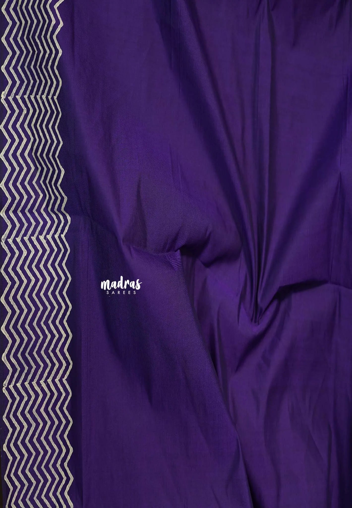 Royal Purple - Sowmiya - Bamboo Cotton with Handblock Checks with Flower Double Blouse Combo - Perfect for Office Wear