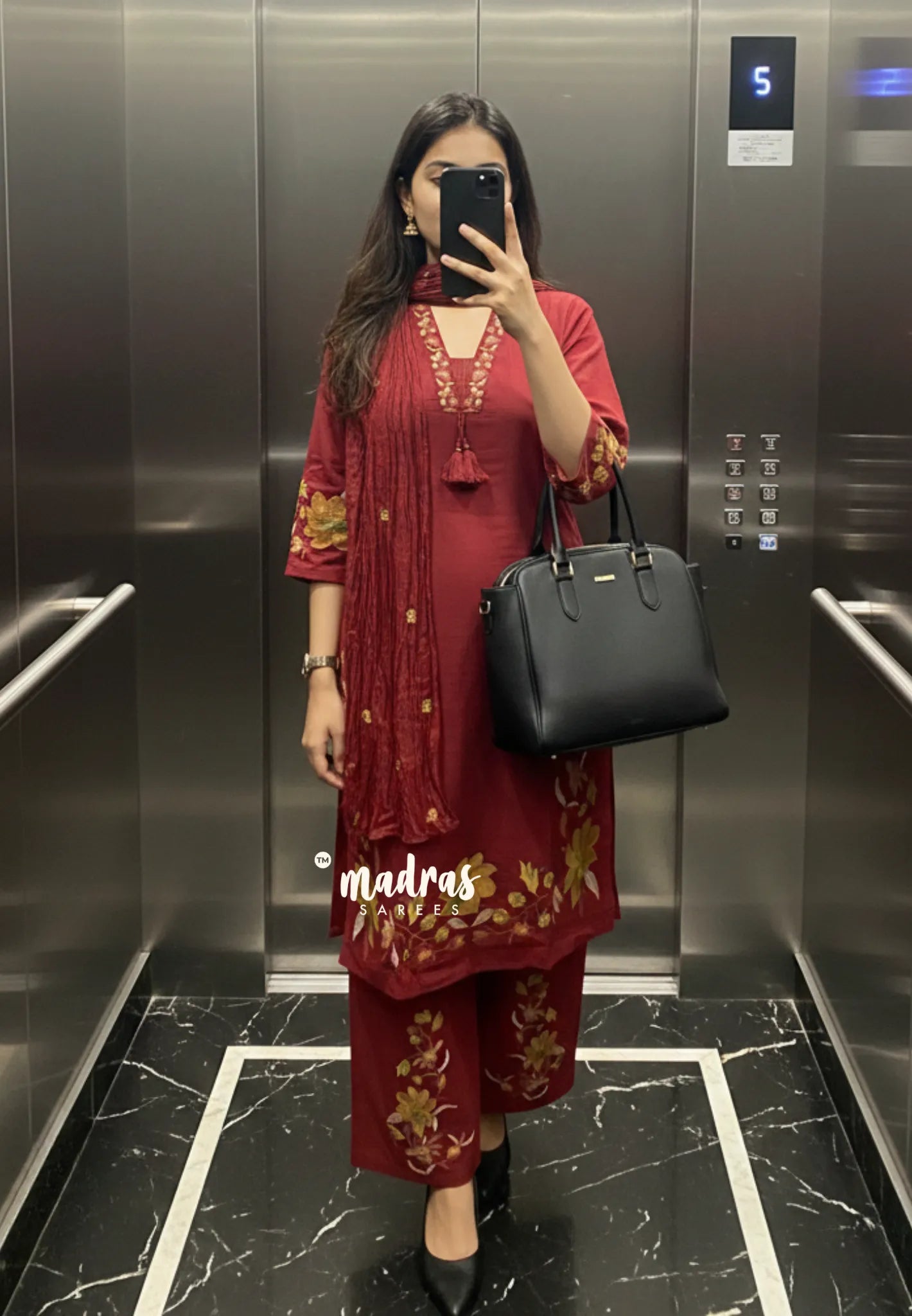 Sleeves: 3/4th Sleeves with Floral Embroidery
