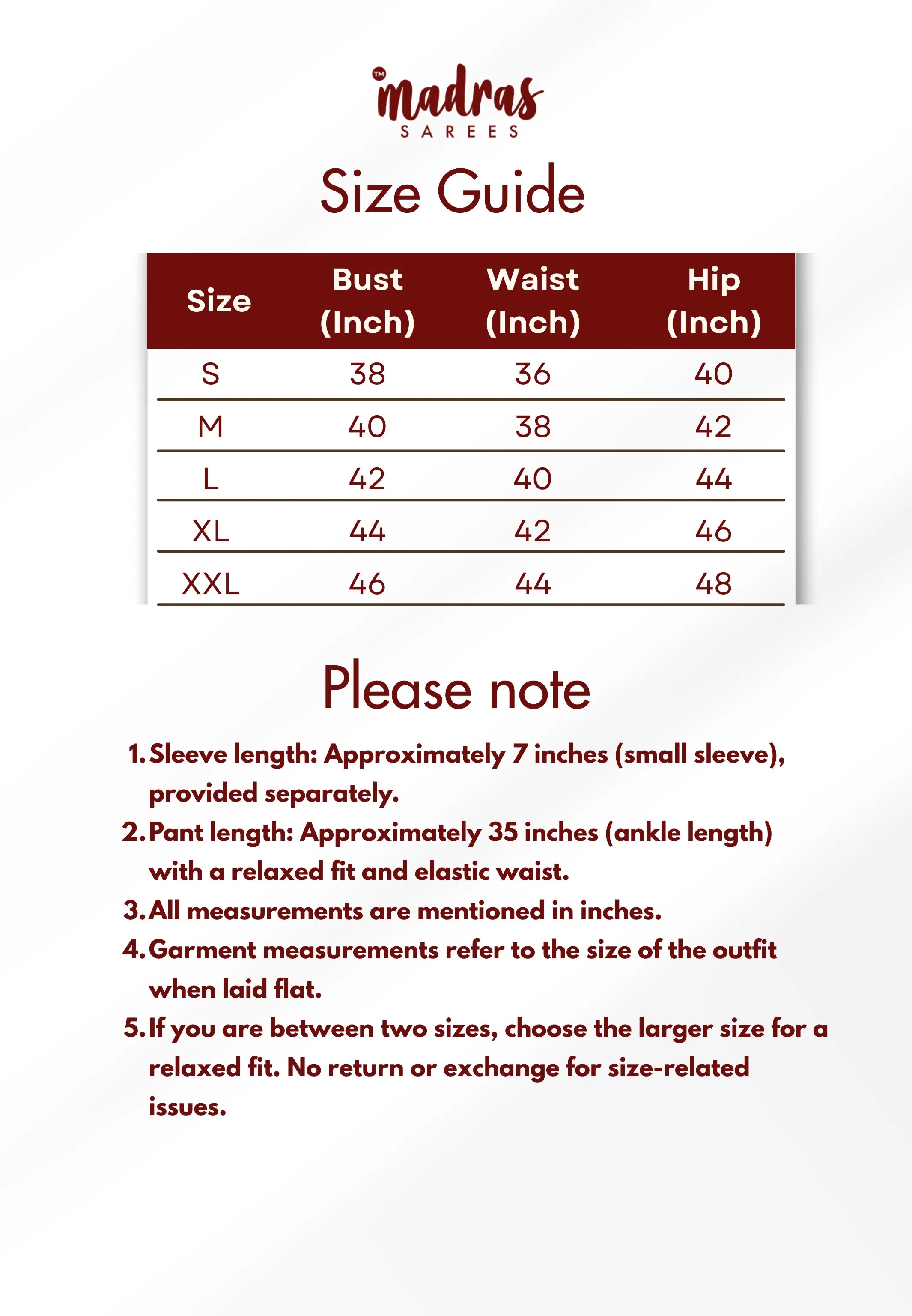 Pant Length: Approx. 35–36 inches (Ankle Length)