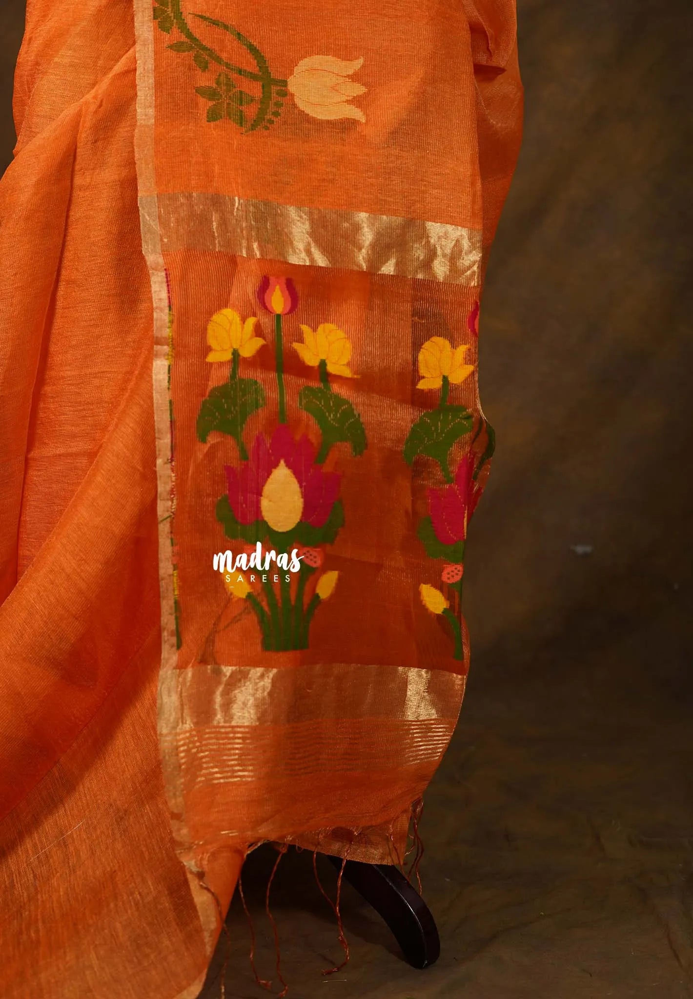 ✨ Handloom Silk Linen Jamdani Saree – Certified Artisanal Weave ✨