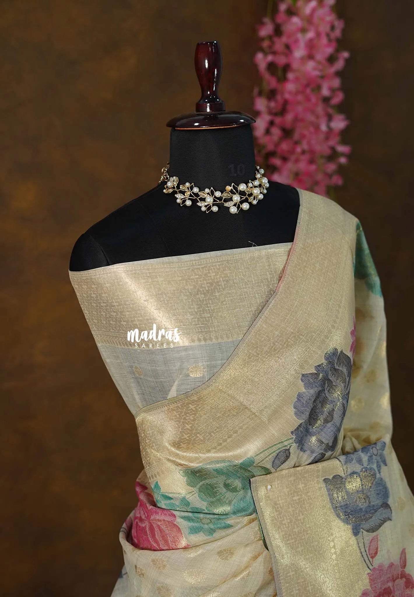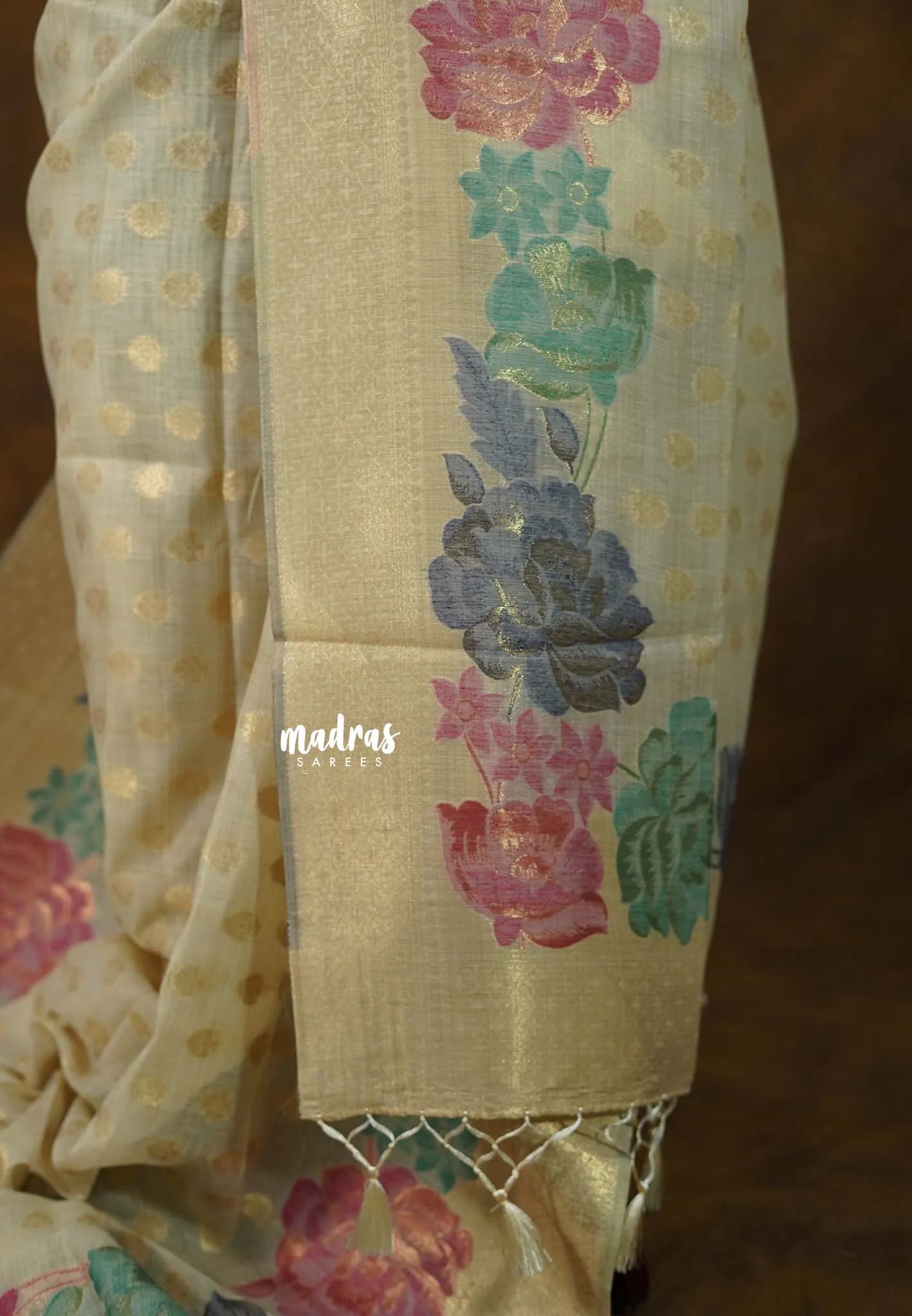 Sandal Beige - Muslin Silk with Full Flower Weaving - Perfect for Festive Wear