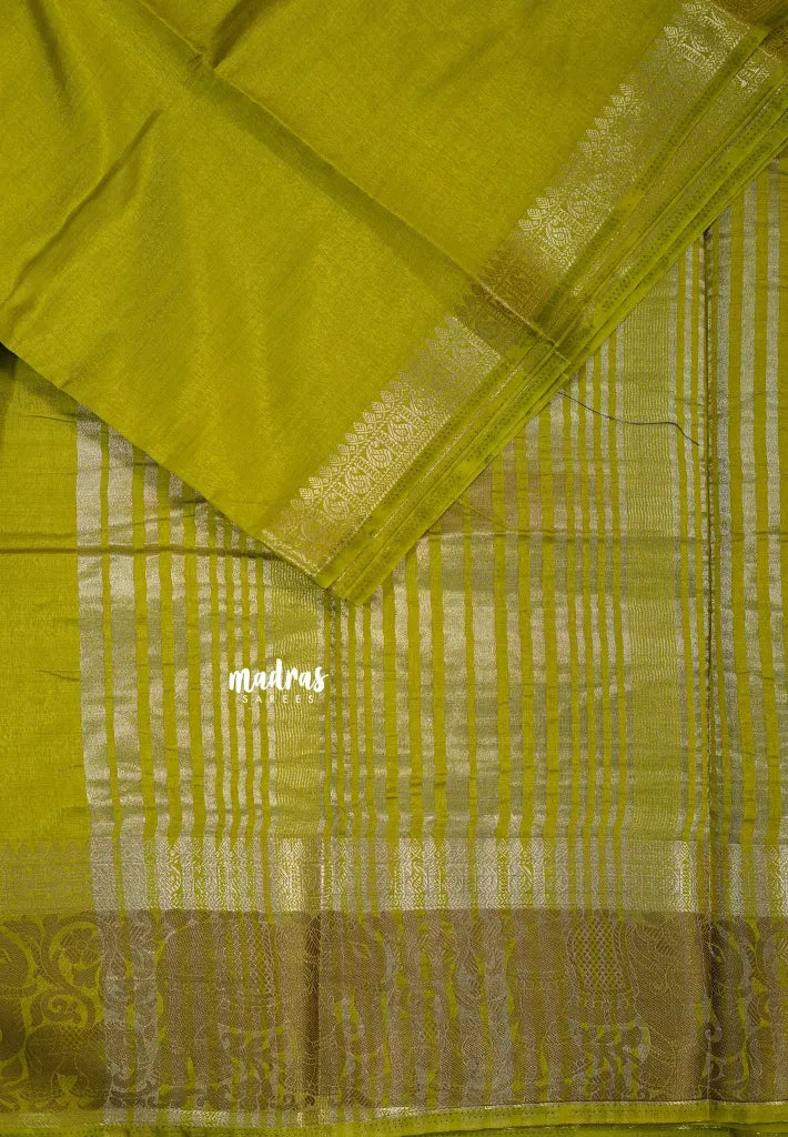 Sap Green - Raaga - Semi Tussar Plain body with Elephant Border