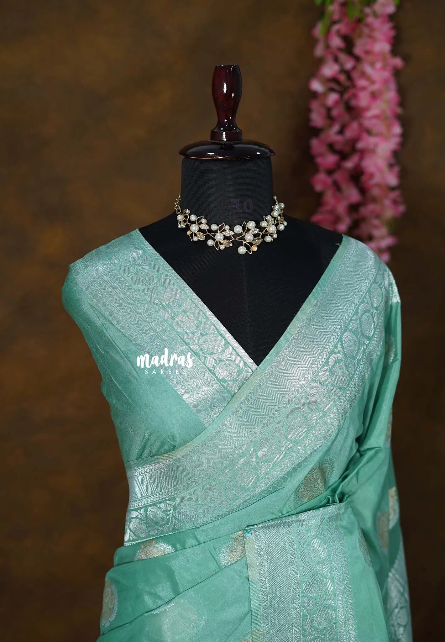 Introducing our classy true Banarasi Chinon Silk saree, designed to captivate with its eye-catching colors. This exquisite saree is perfect for all functions and occasions, from weddings to festive celebrations. The intricate weaving showcases the rich heritage of Banarasi craftsmanship