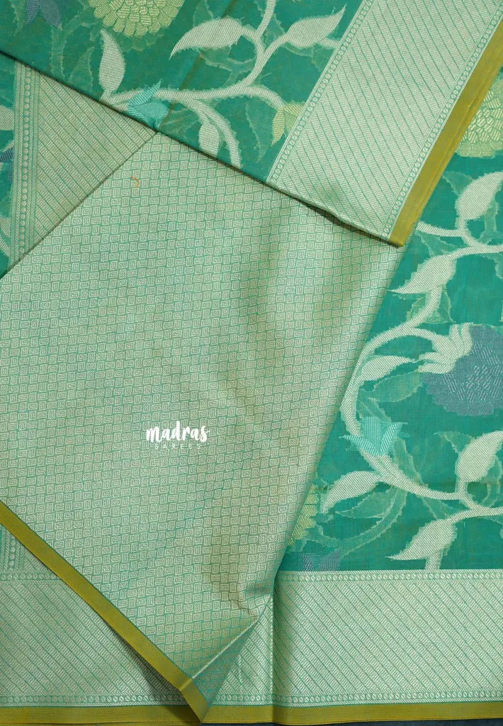 Seafoam Green - Soft Premium Banarasi Jamdani Cotton Saree - Best for Elegant Style