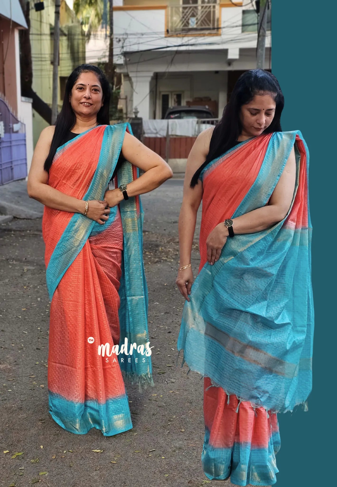 A semi-Tussar saree is made from a blend of Tussar silk and other fabrics, offering a lighter and more affordable alternative to pure Tussar silk. It has a natural sheen, soft texture, and is known for its elegant drape, making it perfect for both casual and festive occasions. Its intricate weaving and vibrant designs make it a versatile, timeless piece.