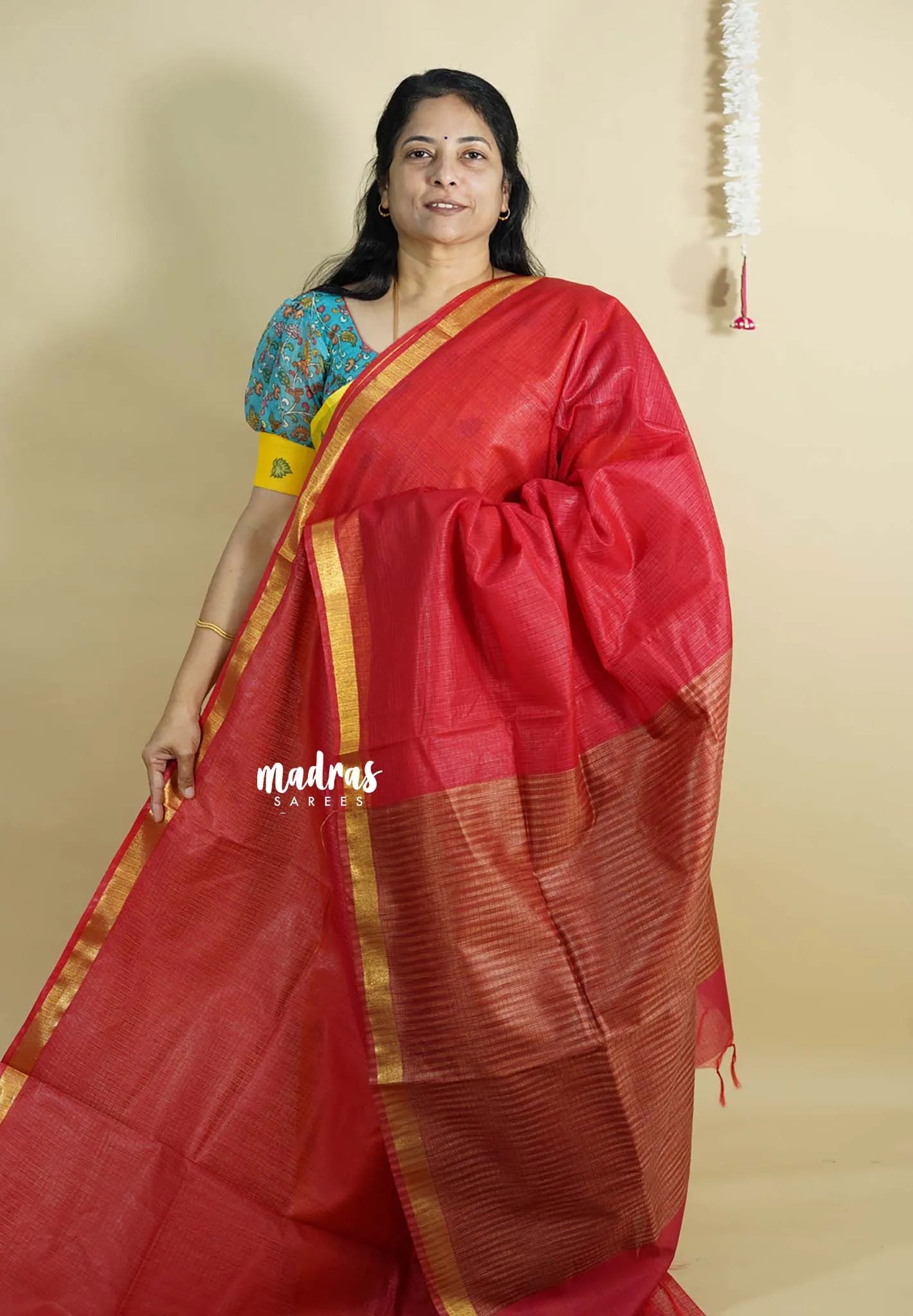 Cherry Red - Shalini Premium kota silk and Giccha Pallu with Tissue Small Boder