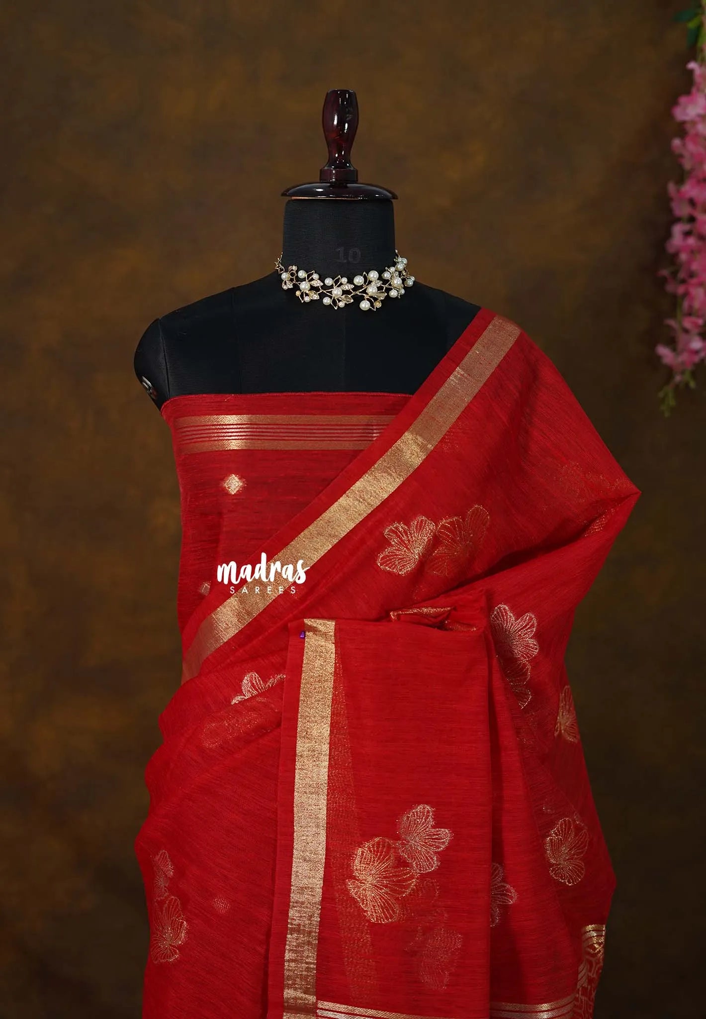 This 120 count premium linen saree is crafted for those who love refined elegance with everyday comfort. The fine, breathable linen offers a smooth and lightweight drape, while the subtle tissue border adds a soft festive sheen without overpowering the look. Delicate motifs enhance its charm, making it a perfect choice for office wear, elegant day functions, and graceful evening gatherings.