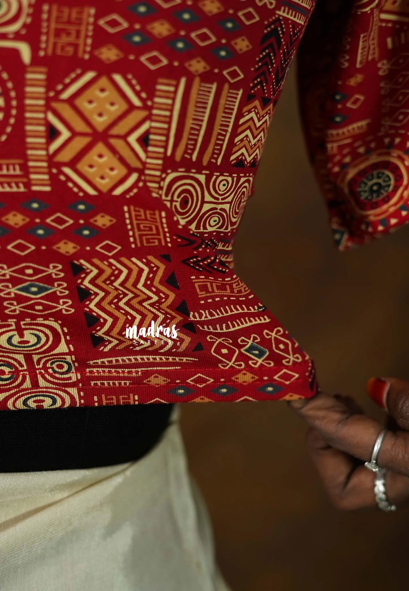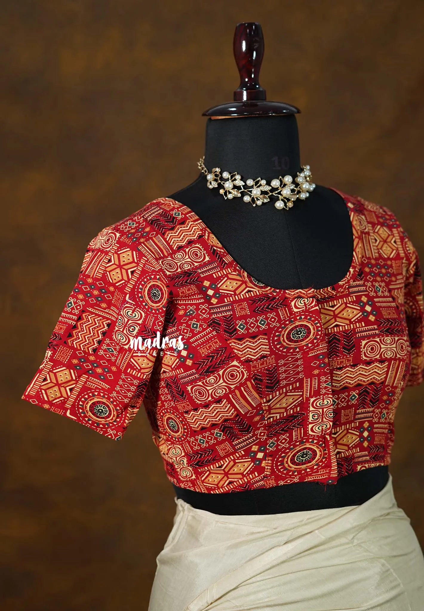 Spice Red - Stretchable Fabric = Stress-Free Fit ✨ Lycra Cotton Readymade Kalamkari printed Blouse – Perfect Fit Comfort