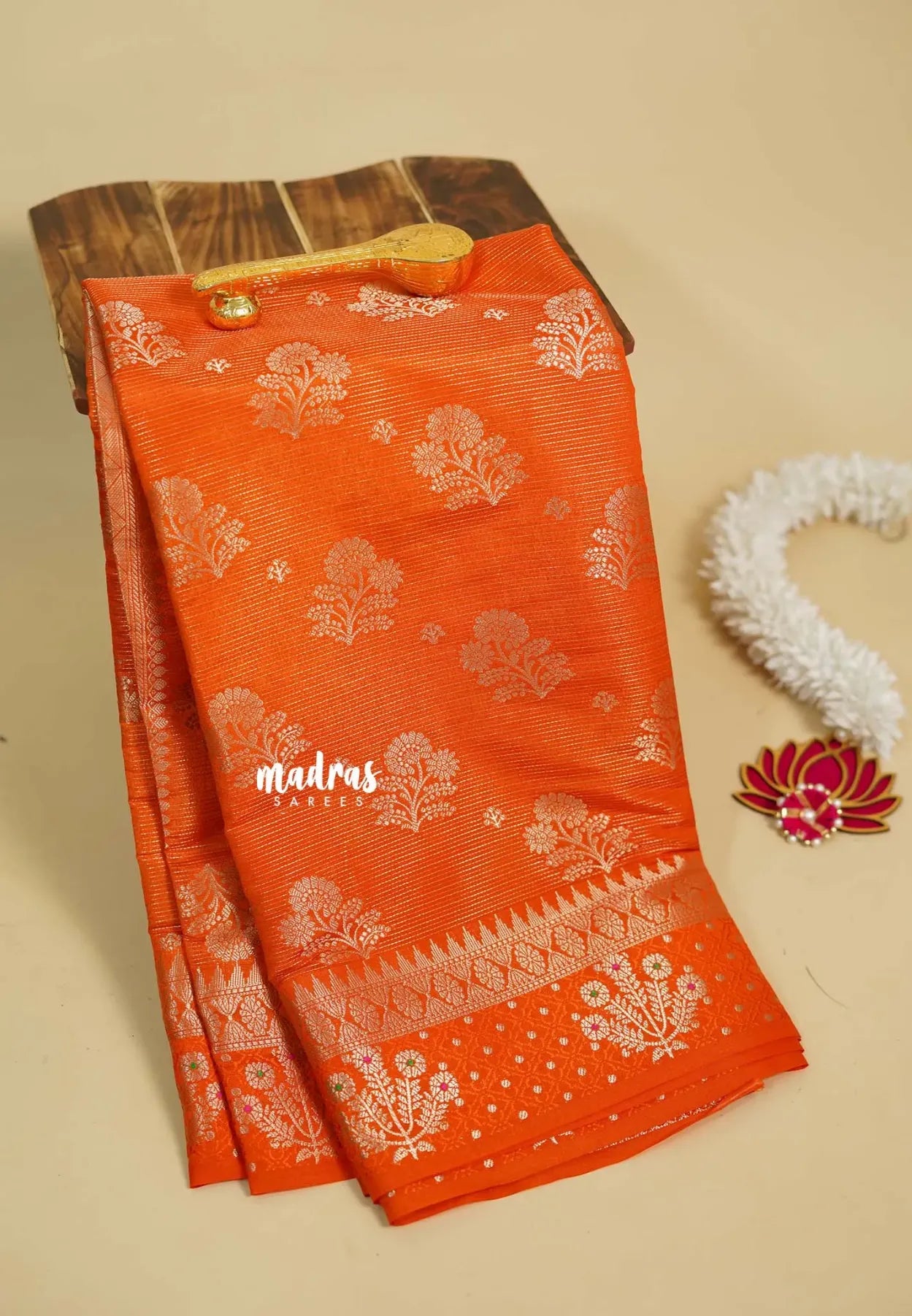 I personally love this colour. Bright orange. I received the same. The saree was of the colour and texture which I wanted to have. Thanks Madras sarees.