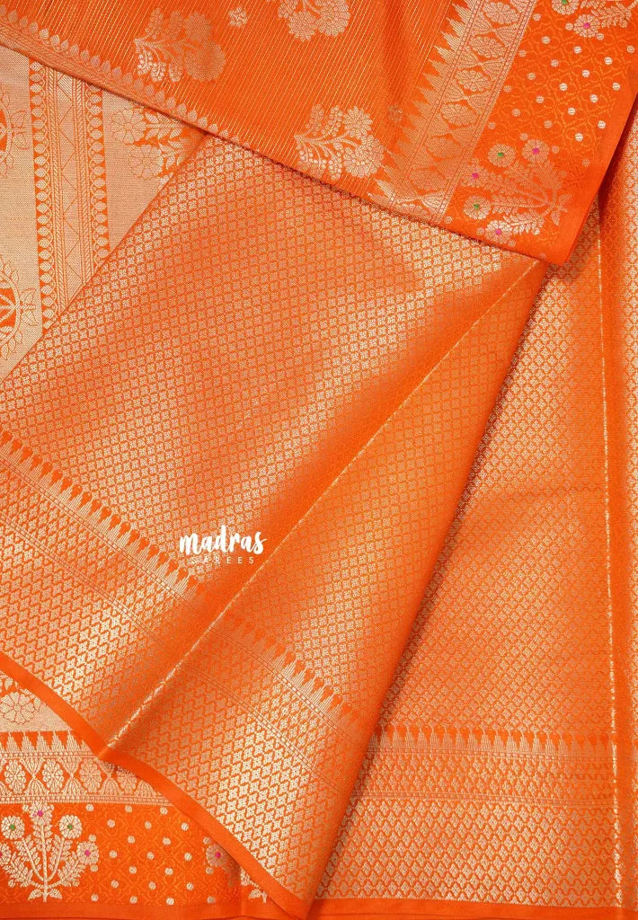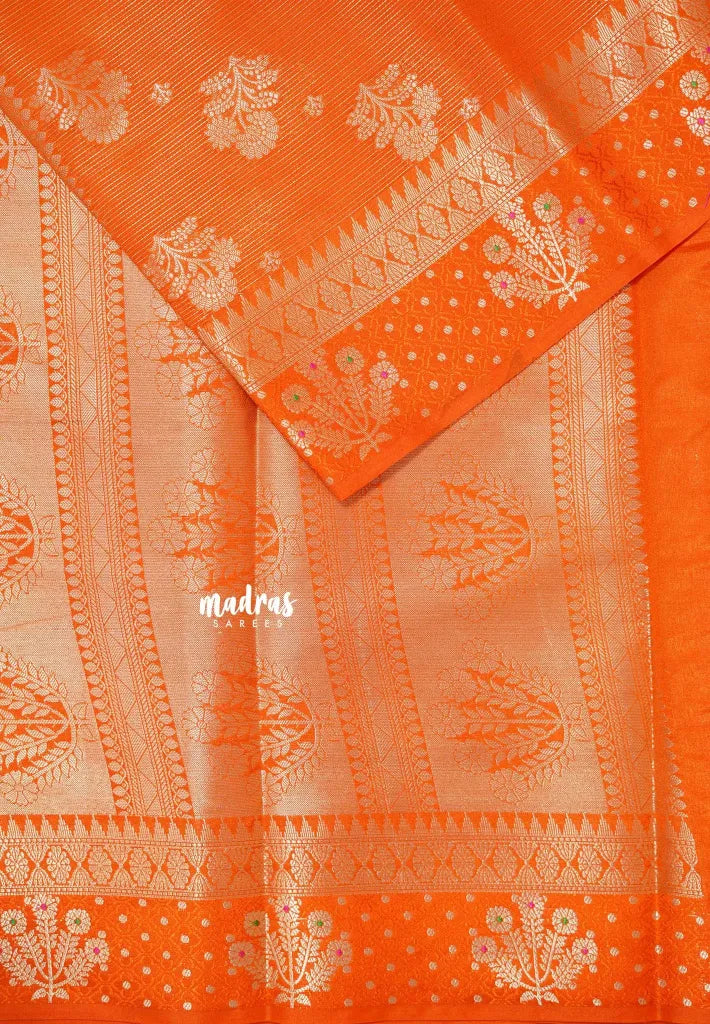 Pulpy orange - Durga - Banarasi katan silk wtih full stripes weaving