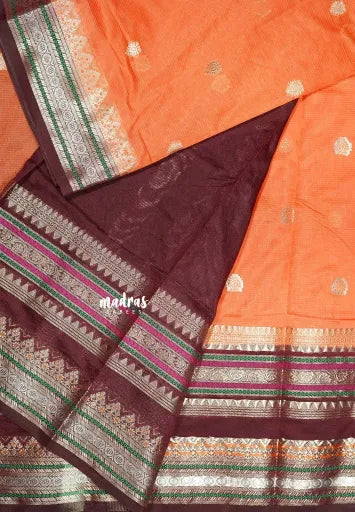 Sunset Orange - Durga - Banarasi soft katan silk with big border