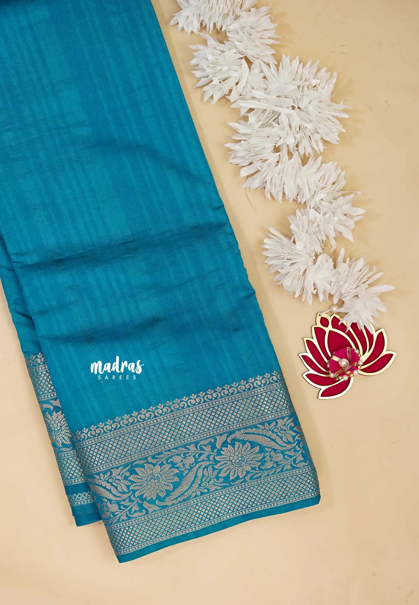 Teal Blue - Madhuram - Soft Matka silk with grooves body with traditional border