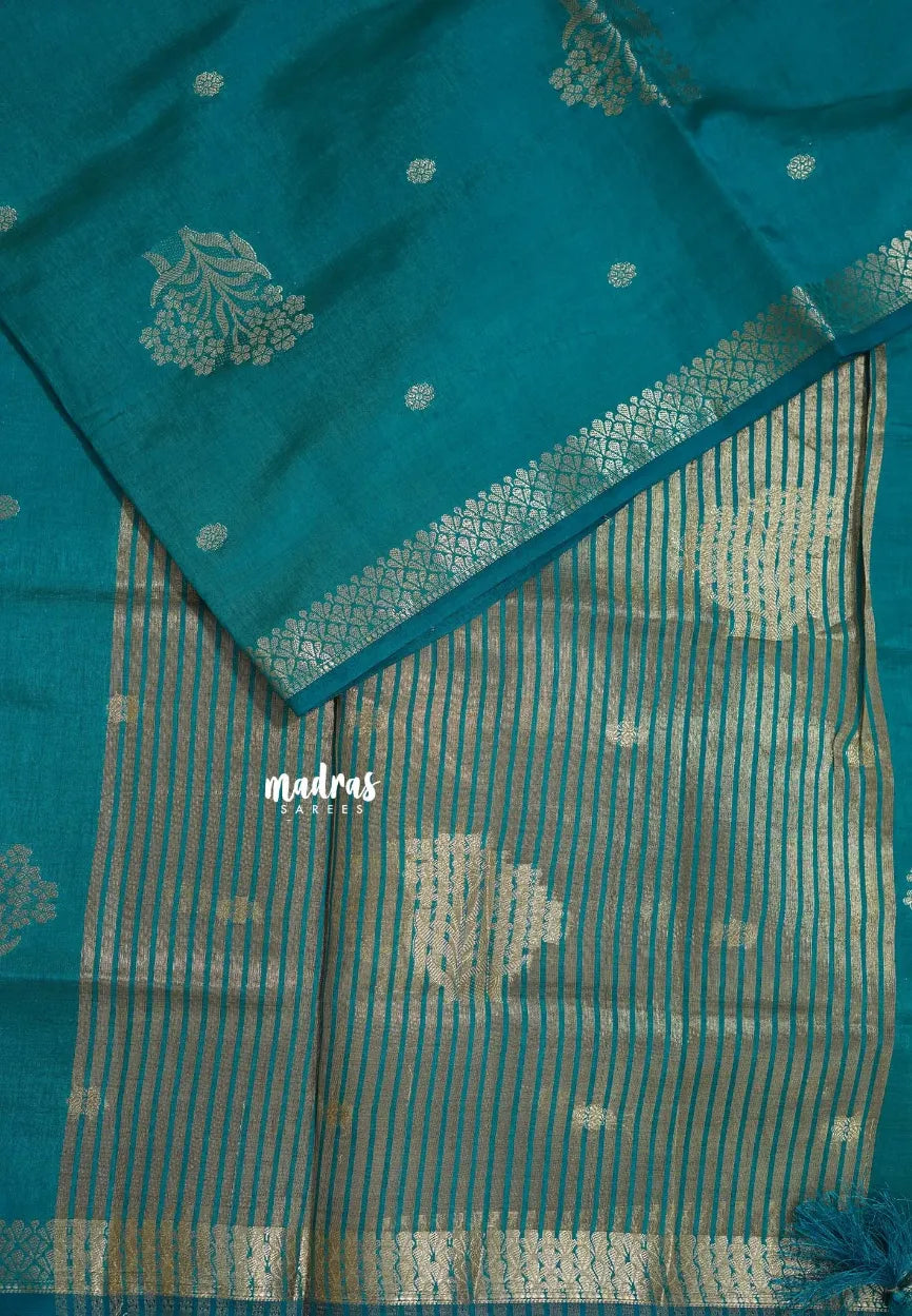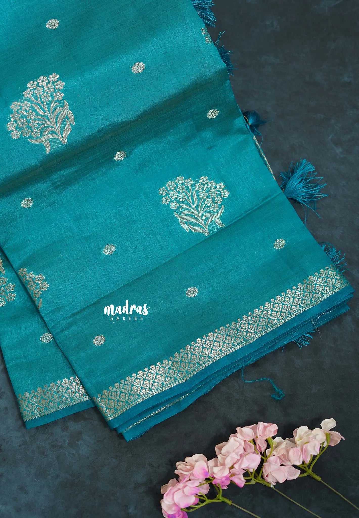 Teal Green - Raaga - Semi Tussar with Zari Floral Buttas and Small Border- Best for Gifting