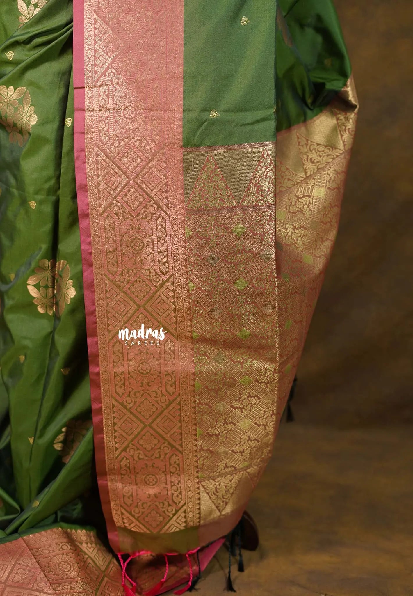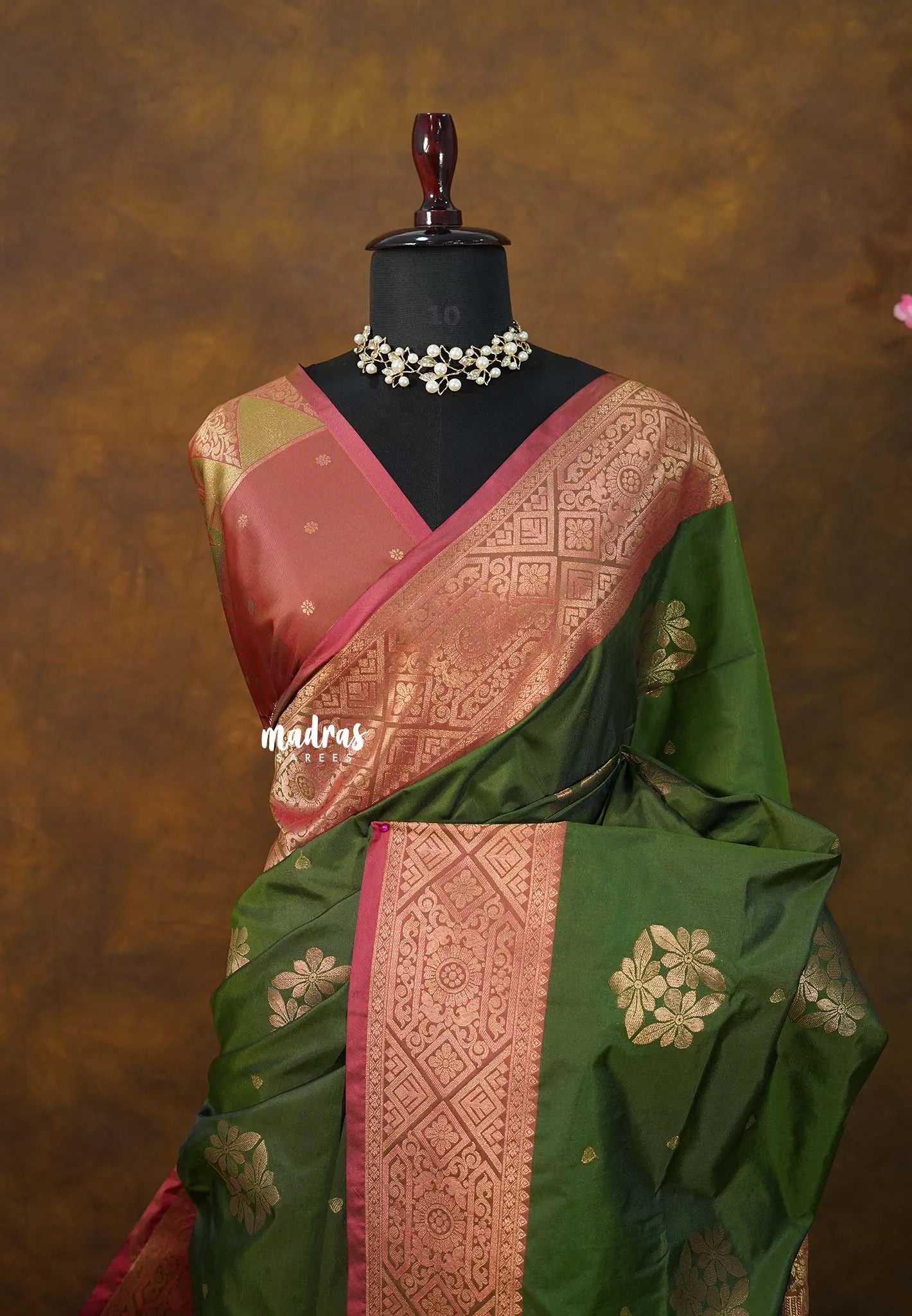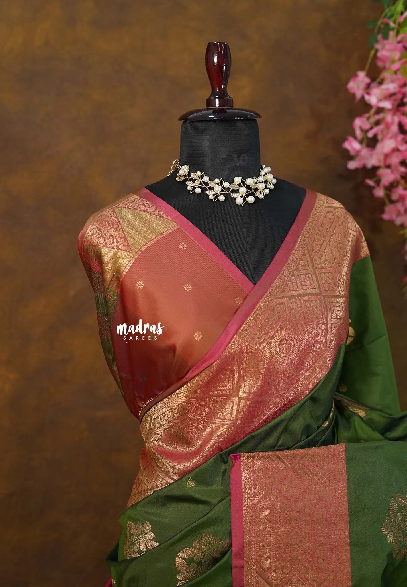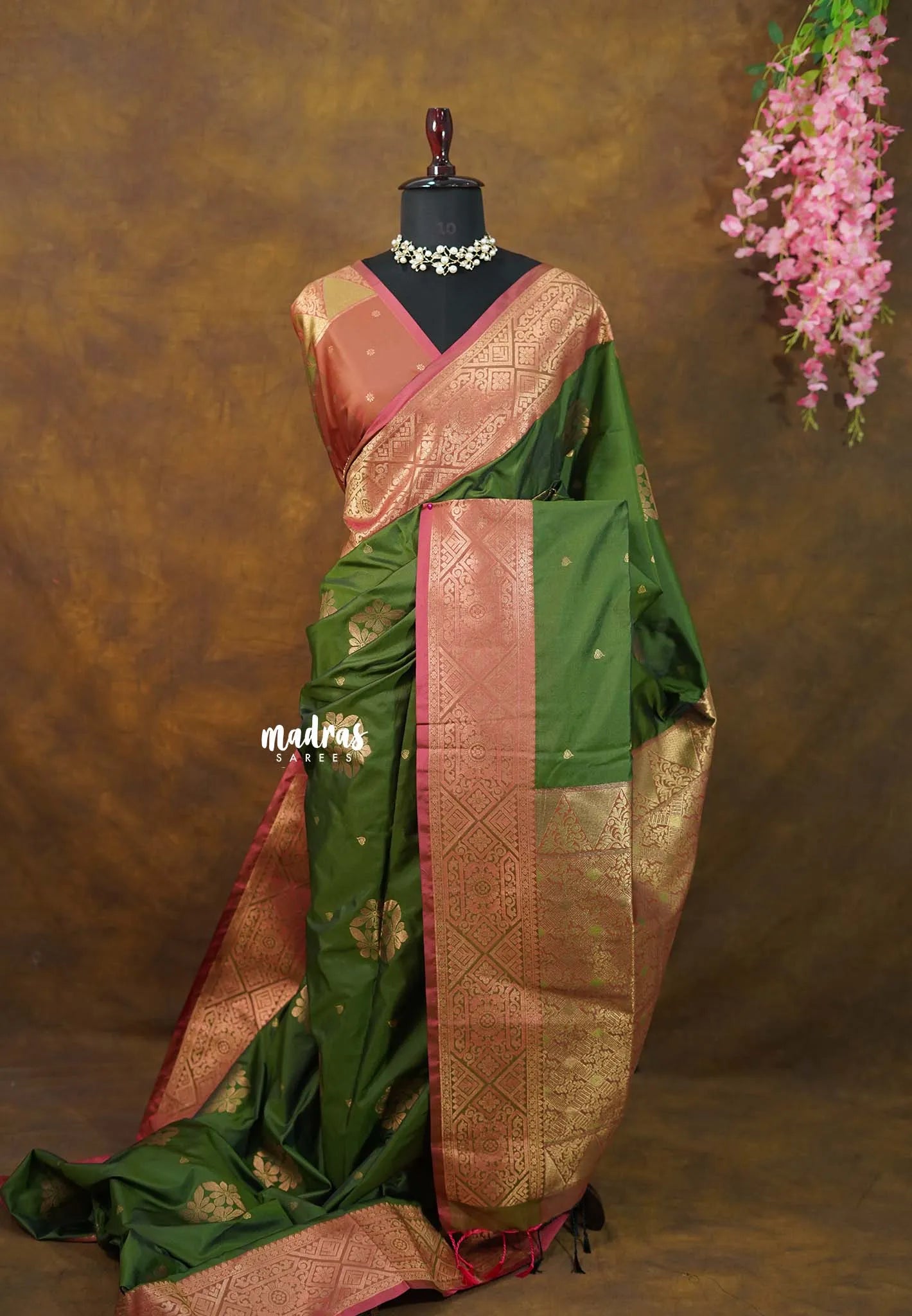 A symbol of elegance and auspicious beginnings, Sowbhagya Gift Silk features intricate traditional patterns and a refined zari border. Perfect for special moments, sacred ceremonies, and treasured gifts.