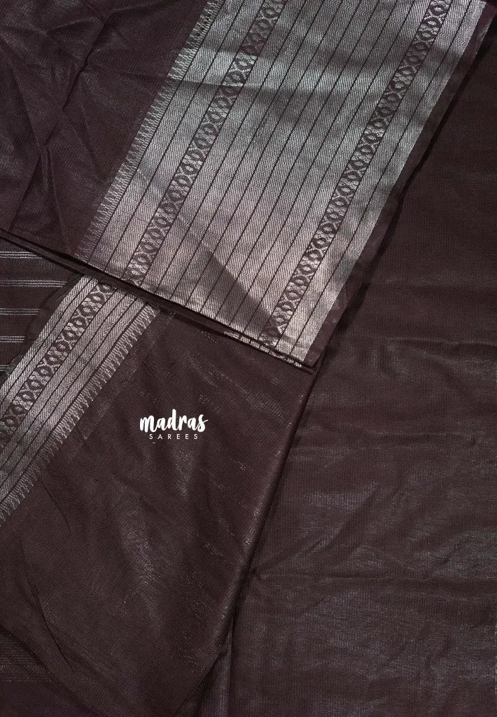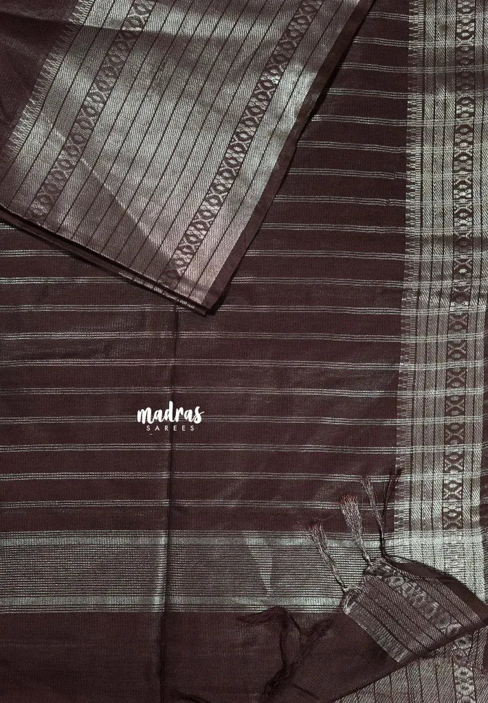 Wine Brown - Mangalgiri semi pattu with silver zari big border