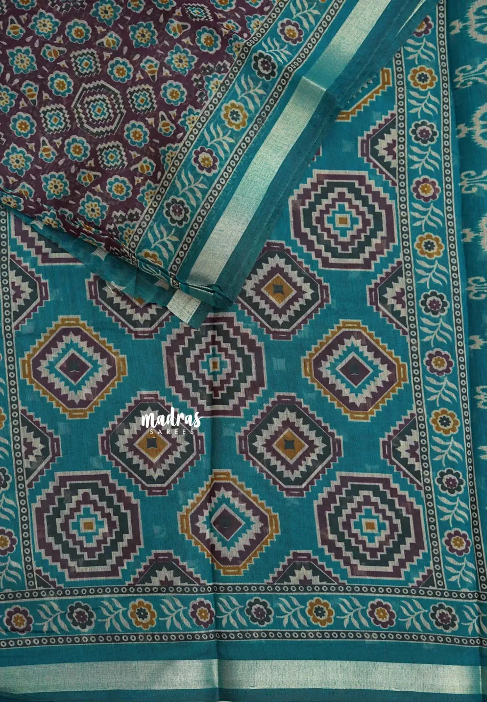 Wine Plum - Kalanjali Soft Chanderi Silk with Ajrakh Prints