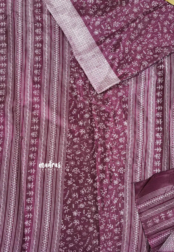Wine purple - Uniform sarees Malgudi printed silk small prints
