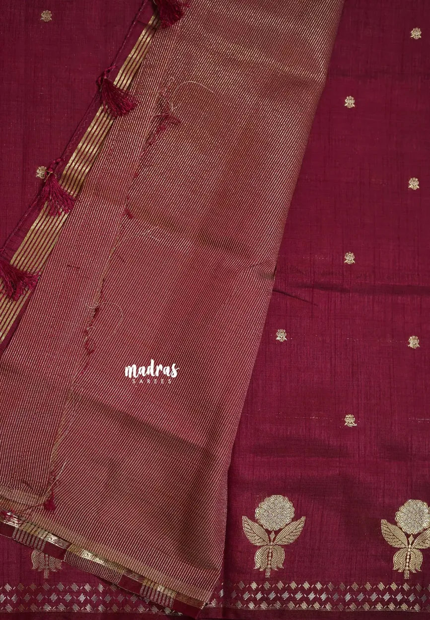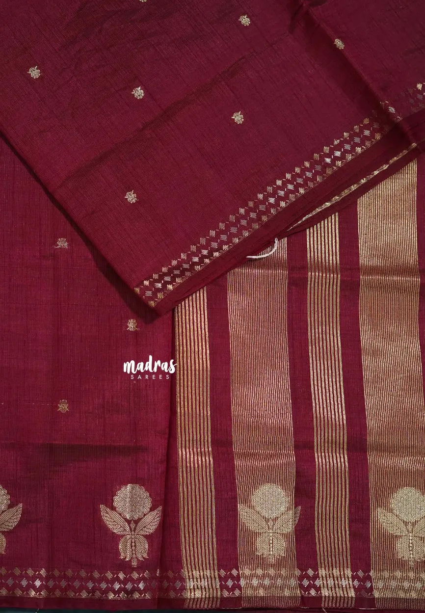 Winered - Raaga - Lightweight Semi tussar saree with zari bloom border with buttas - Perfect for Festive Moments